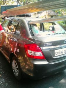 ಈ ಸಂದರ್ಭದಲ್ಲಿ ಹಿಂದಿನಿಂದ ಕಬ್ಬಿಣದ ರಾಡ್ಗಳನ್ನು ಹೇರಿಕೊಂಡು ತೆರಳುತ್ತಿದ್ದ ಓಮ್ನಿ ಕಾರಿನ ಚಾಲಕ ಕೂಡಾ ಏಕಾಏಕಿ ಬ್ರೇಕ್ ಹಾಕಿದ್ದ. ಆಗ ಮೇಲಿದ್ದ ಕಬ್ಬಣದ ರಾಡ್ಗಳು ನೇರವಾಗಿ ಎದುರಿಗಿದ್ದ ಸ್ವಿಫ್ಟ್ ಕಾರಿನ ಹಿಂಭಾಗದ ಗಾಜಿನ ಮೂಲಕ ಒಳ ನುಗ್ಗಿ ಮುಂಭಾಗದ ಗಾಜಿನ ಮೂಲಕ ಹೊರಕ್ಕೆ ಬಂದಿದೆ.