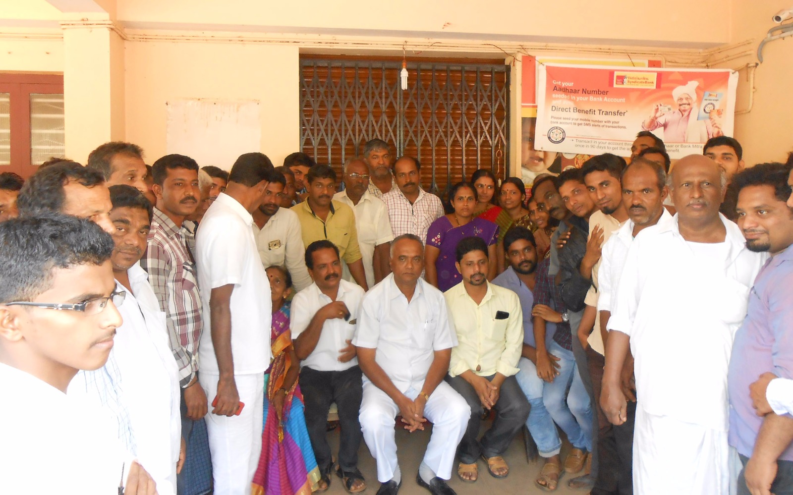 ಮಂಗಳವಾರ ಸಾಲೆತ್ತೂರು ಗ್ರಾಮದ ರಾಷ್ಟ್ರೀಕೃತ ಬ್ಯಾಂಕ್ನ ಮುಂದೆ ಗ್ರಾಹಕರಿಗೆ ಕನಿಷ್ಠ ಹಣ ಹಾಗೂ ಸರಿಯಾದ ಮಾಹಿತಿ ನೀಡದೇ ಇರುವುದರ ವಿರುದ್ದ ನಡೆದ ಪ್ರತಿಭಟನೆಯನ್ನುದ್ದೇಶಿಸಿ ಮಾತನಾಡಿದರು.