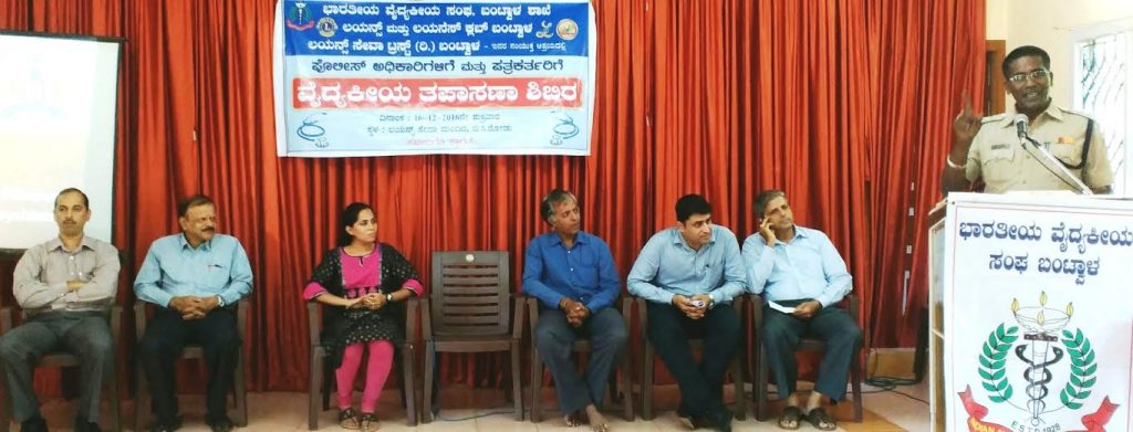 ಭಾರತೀಯ ವೈದ್ಯಕೀಯ ಸಂಘ (ಐಎಂಎ) ತಾಲೂಕು ಘಟಕ ವತಿಯಿಂದ ಲಯನ್ಸ್ ಮತ್ತು ಲಯನೆಸ್ ಕ್ಲಬ್ ಹಾಗೂ ಲಯನ್ಸ್ ಸೇವಾ ಟ್ರಸ್ಟಿನ ಸಹಭಾಗಿತ್ವದಲ್ಲಿ ಪೊಲೀಸ್ ಮತ್ತು ಪತ್ರಕರ್ತರಿಗಾಗಿ ಬಿ.ಸಿ.ರೋಡ್ನಲ್ಲಿ ಶುಕ್ರವಾರ ಏರ್ಪಡಿಸಿದ್ದ ಉಚಿತ ವೈದ್ಯಕೀಯ ತಪಾಸಣಾ ಶಿಬಿರ ಕಾರ್ಯಕ್ರಮದಲ್ಲಿ ಅವರು ಮಾತನಾಡಿದರು.