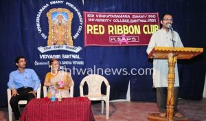 ಬಂಟ್ವಾಳ ಶ್ರೀ ವೆಂಕಟರಮಣ ಸ್ವಾಮಿ ಪದವಿ ಪೂರ್ವ ಕಾಲೇಜಿನಲ್ಲಿ ರೆಡ್ ರಿಬ್ಬನ್ ಕ್ಲಬ್ ವತಿಯಿಂದ ನಡೆದ ಏಡ್ಸ್ ಜಾಗೃತಿ ಅರಿವು ಕಾರ್‍ಯಕ್ರಮದಲ್ಲಿ ವಿಶೇಷ ಉಪನ್ಯಾಸ ನೀಡಿದರು.