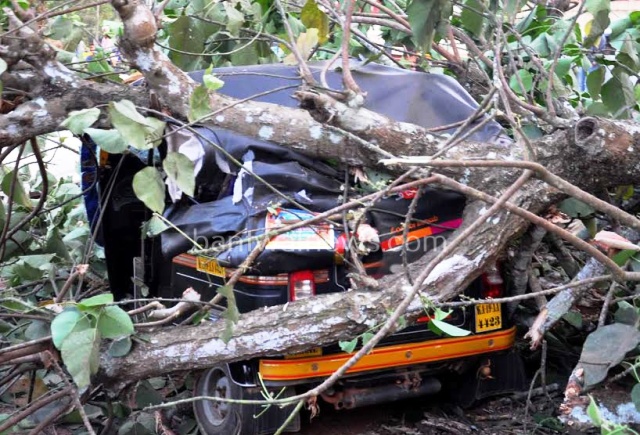 ರಸ್ತೆ ಬದಿಯ ಮರವೊಂದು ಚಲಿಸುತ್ತಿದ್ದ ರಿಕ್ಷಾದ ಮೇಲೆ ಬಿದ್ದು ಚಾಲಕ ಹಾಗೂ ಸವಾರ ಗಂಬೀರ ಗಾಯಗೊಂಡ ಘಟನೆ ಕಲ್ಲಡ್ಕ ಕಾಂಞಂಗಾಡು ಅಂತರಾಜ್ಯ ಹೆದ್ದಾರಿಯ ಅಡ್ಯನಡ್ಕ ಪೇಟೆಯ ಸಮೀಪ ನಡೆದಿದೆ.