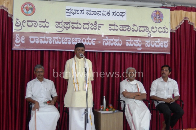 ಕಲ್ಲಡ್ಕ ಶ್ರೀರಾಮ ಪ್ರಥಮ ದರ್ಜೆ ಮಹಾವಿದ್ಯಾಲಯದಲ್ಲಿ ಪ್ರಭಾಸ ಮಾನವಿಕ ಸಂಘವು ಆಯೋಜಿಸಿದ ಶ್ರೀ ರಾಮಾನುಜಾಚಾರ್ಯ ನೆನಪು ಮತ್ತು ಸಂದೇಶ ಎಂಬ ಕಾರ್ಯಕ್ರಮದಲ್ಲಿ ಮಾತಾನಾಡಿದರು.