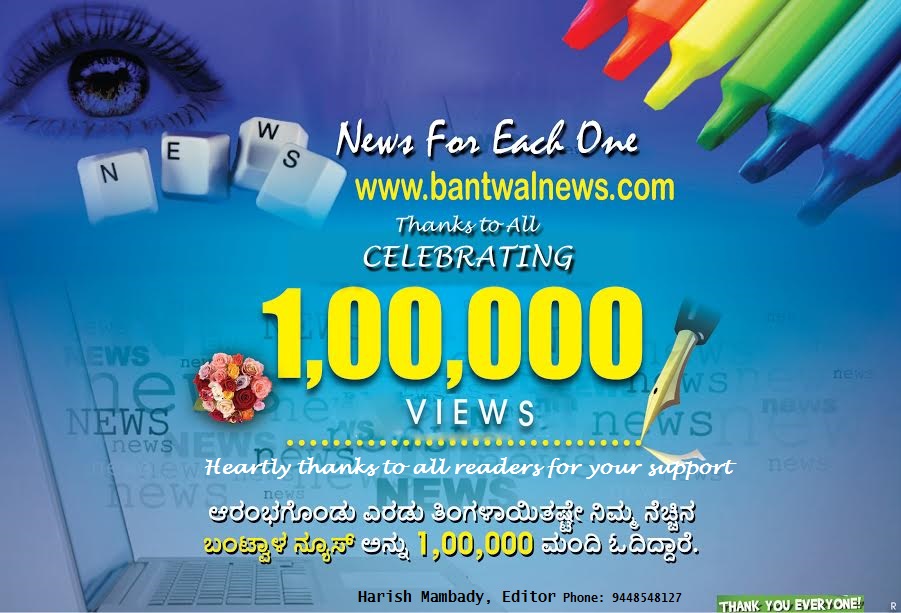 ಸುದ್ದಿ ಕೊಡುವ ಅಸಂಖ್ಯ ಜಾಲತಾಣಗಳ ಮಧ್ಯೆ ಬಂಟ್ವಾಳನ್ಯೂಸ್ ಆರಂಭಗೊಂಡಾಗ ಹತ್ತರೊಟ್ಟಿಗೆ ಹನ್ನೊಂದು ಎಂಬಂತೆ ನೋಡಿದವರೂ ಇದ್ದಾರೆ. ಆದರೆ ಪ್ರತಿದಿನವೂ ಕ್ಲಿಕ್ ಮಾಡ್ತಾರೆ ಎಂಬುದಕ್ಕೆ ಸಾಕ್ಷಿ ಈ ಲೆಕ್ಕ. 1,02,000 ಓದುಗರು ಇದುವರೆಗೆ ಈ ವೆಬ್ ಸೈಟ್ ಕ್ಲಿಕ್ ಮಾಡಿ ಇಲ್ಲಿನ ವಿಚಾರಗಳ ಬಗ್ಗೆ ಮಾಹಿತಿ ಸಂಗ್ರಹಿಸಿದ್ದಾರೆ, ಓದಿ ತಮ್ಮ ಅಭಿಪ್ರಾಯ ತಿಳಿಸಿದ್ದಾರೆ. ವಿಶೇಷವಾಗಿ ದೇಶ, ವಿದೇಶಗಳಲ್ಲಿರುವ ಸ್ನೇಹಿತರನ್ನೊಳಗೊಂಡಂತೆ ಹಲವಾರು ಮಂದಿ ಬಂಟ್ವಾಳ ತಾಲೂಕಿನ ಸುದ್ದಿಗಳ ದೈನಂದಿನ ಅಪ್ ಡೇಟ್ ಕಂಡು ಮೆಚ್ಚಿದ್ದಾರೆ. ಇಷ್ಟು ಅಗಾಧ ಬೆಂಬಲ ದೊರಕುತ್ತಿದೆ  ಎಂದರೆ ಬಂಟ್ವಾಳನ್ಯೂಸ್ ನಿಧಾನವಾಗಿ ಹೆಜ್ಜೆಯೂರುತ್ತಿದೆ ಎಂದರ್ಥ. ಅಂದದ ವೆಬ್ ಡಿಸೈನ್ ಮಾಡಿದ ಆದಿತ್ಯ ಕಲ್ಲೂರಾಯ, ಕಾಲಕಾಲಕ್ಕೆ ಸಲಹೆ ಸೂಚನೆ ಕೊಡುತ್ತಿರುವ ಹಿರಿಯ, ಕಿರಿಯ ಪತ್ರಕರ್ತ ಮಿತ್ರರು, ಕಾಲಂಗಳನ್ನು ನೀಡುವ ಮೂಲಕ ಪ್ರೋತ್ಸಾಹಿಸುತ್ತಿರುವ ಡಾ.ಅಜಕ್ಕಳ ಗಿರೀಶ್ ಭಟ್, ಅನಿತಾ ನರೇಶ್ ಮಂಚಿ, ಬಿ.ತಮ್ಮಯ್ಯ, ಡಾ.ರವಿಶಂಕರ್, ಮೌನೇಶ ವಿಶ್ವಕರ್ಮ, ತೆರೆಮರೆಯಲ್ಲಿದ್ದು ಪ್ರೋತ್ಸಾಹಿಸುತ್ತಿರುವ ಹಲವಾರು ಬಂಧುಗಳು, ಓದುಗರು ಹಾಗೂ ಆರ್ಥಿಕವಾಗಿ ಗಟ್ಟಿಯಾಗಲು ನೆರವಾದ ಜಾಹೀರಾತುದಾರರಿಗೆ ಈ ಮೂಲಕ ನನ್ನ ಹೃದಯಾಂತರಾಳದ ಕೃತಜ್ಞತೆ. ತಾಲೂಕಿನ ಸುದ್ದಿಗಳನ್ನಷ್ಟೇ ಕೇಂದ್ರೀಕೃತವಾಗಿಸಿ ಆರಂಭಗೊಂಡ ಬಂಟ್ವಾಳನ್ಯೂಸ್ ಇಂದು ದಕ್ಷಿಣ ಕನ್ನಡ ಜಿಲ್ಲೆಯ ಪ್ರಮುಖ ಘಟನಾವಳಿಯನ್ನೂ ಒದಗಿಸುವ ಪ್ರಯತ್ನ ಮಾಡುತ್ತಿದೆ. ಇದಕ್ಕೆಲ್ಲ ನಿಮ್ಮ ಹಾರೈಕೆ, ಪ್ರೋತ್ಸಾಹ ಎಂದಿನಂತೆ ಇರಲಿ.