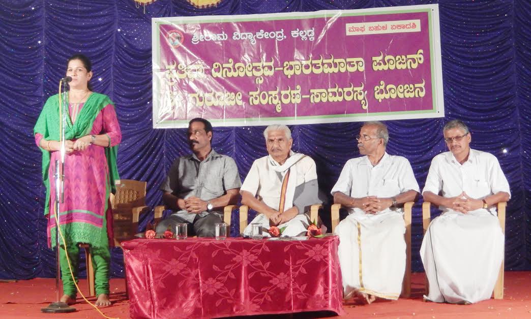 ಈ ಸಂದರ್ಭ ಸಭಾ ಕಾರ್ಯಕ್ರಮ ಬಳಿಕ ಸಾಮರಸ್ಯ ಭೋಜನ ನಡೆಯಿತು. ಮುಖ್ಯ ಅತಿಥಿಗಾಗಿ ಅಂತಾರಾಷ್ಟ್ರೀಯ ಕ್ರೀಡಾಪಟು ಲಲಿತಾ ಜಯರಾಮ್ ಭಾಗವಹಿಸಿ ಮಾತನಾಡಿ, ಸಂಸ್ಕಾರಭರಿತ ಶಿಕ್ಷಣ ನೀಡಿ ಸಮಾಜಕ್ಕೆ ಸತ್ಪ್ರಜೆಯನ್ನು ಕೊಡುವುದೇ ದೇಶಪ್ರೇಮ. ಮಕ್ಕಳ ಮನಸ್ಸು ಹಸಿ ಮಣ್ಣಿನಂತೆ. ಅಲ್ಲಿ ಇಟ್ಟ ಹೆಜ್ಜೆ ಮಾಸುವುದಿಲ್ಲ. ಸಂಸ್ಕಾರ ಇಲ್ಲದ ಶಿಕ್ಷಣ ಸುಗಂಧವಿಲ್ಲದ ಪುಷ್ಪದಂತೆ ಎಂದು ಹೇಳಿದರು.