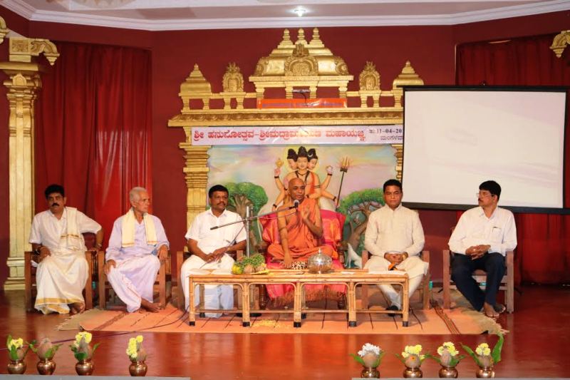 ಶ್ರೀಮದ್ರಾಮಾಯಣ ಮಹಾಯಜ್ಞ ಹಾಗೂ ಹನುಮೋತ್ಸವ ಸಂದರ್ಭ ಮಂಗಳವಾರ ನಡೆದ ಧರ್ಮಸಭೆಯಲ್ಲಿ ಅವರು ಆಶೀರ್ವಚನ ನೀಡಿದರು.