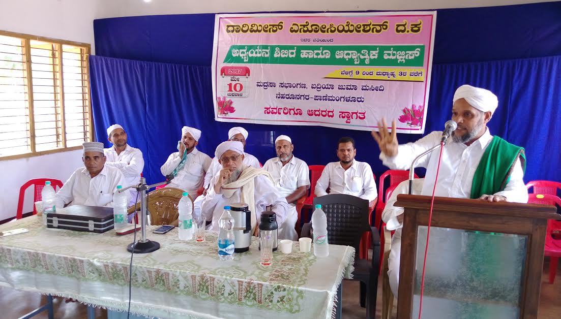 ದಾರಿಮೀಸ್ ಎಸೋಸಿಯೇಶನ್ ದಕ್ಷಿಣ ಕನ್ನಡ ಜಿಲ್ಲಾ ವತಿಯಿಂದ ಬೃಹತ್ ಅಧ್ಯಯನ ಶಿಬಿರ ಹಾಗೂ ಆಧ್ಯಾತ್ಮಿಕ ಮಜ್ಲಿಸ್ ಕಾರ್ಯಕ್ರಮ ಪಾಣೆಮಂಗಳೂರು ನೆಹರೂ ನಗರದ ಬದ್ರಿಯಾ ಜುಮಾ ಮಸೀದಿಯ ಶಂಸುಲ್ ಉಲಮಾ ವೇದಿಕೆಯಲ್ಲಿ ಬುಧವಾರ ನಡೆಯಿತು.