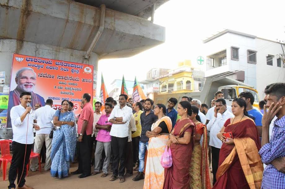 .ಈ ವರೆಗೆ ಒಂದು ರಜೆ ಪಡೆಯದೆ ದಿನದ 18 ತಾಸು ಕೆಲಸ ಟೀಕಾಕಾರರ ಬಾಯ್ಮುಚ್ಚಿಸಿದೆ ಎಂದ ಅವರು ಕರ್ನಾಟಕಕ್ಕೂ ಸುಮಾರು ೪೮ ಸಾವಿರ ಕೋ.ರೂ.ಕೇಂದ್ರ ಸರಕಾರ ನೀಡಿದ್ದು,ಕೇಂದ್ರದ ಅನುದಾನದಲ್ಲಾಗಿರುವ ಅಭಿವ್ರದ್ದಿ ಕಾಮಗಾರಿಗಳು ರಾಜ್ಯದ್ದೆ ಎಂದು ಬಿಂಬಿಸಿ ಇಲ್ಲಿ ತೆಂಗಿನಕಾಯಿ ಒಡೆಯಲಾಗುತ್ತಿದೆ ಎಂದು ಟೀಕಿಸಿದರು. ಮುಂದಿನವರ್ಷ ಕರ್ನಾಟಕ ವಿಧಾನ ಸಭೆಗೂ ನಡೆಯುವ ಚುನಾವಣೆಯಲ್ಲಿ ಬಿಜೆಪಿ ಆಡಳಿತ ಚುಕ್ಕಾಣಿ ಹಿಡಿಯುವುದು ನಿಶ್ಚಿತ ಎಂದ ರಾಜೇಶ್ ನಾಯ್ಕ್ ತನ್ಮೂಲಕ ಕಾಂಗ್ರಸ್ ಮುಕ್ತ ಕರ್ನಾಟಕ ವನ್ನಾಗಿಸುವ ನಿಟ್ಟಿನಲ್ಲಿ ಕಾರ್ಯಕರ್ತರು ಶ್ರಮಿಸಬೇಕೆಂದರು.