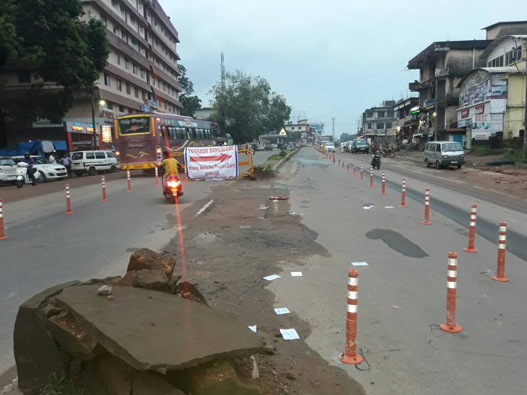 ಶನಿವಾರ ಮಧ್ಯಾಹ್ನವಾಗುವ ಸಂದರ್ಭ ಚಿತ್ರಣವೇ ಬೇರೆ. ಮತ್ತೆ ಹಿಂದಿನ ಸ್ಥಿತಿಗೆ ರಸ್ತೆ ಮರಳಿದೆ.
