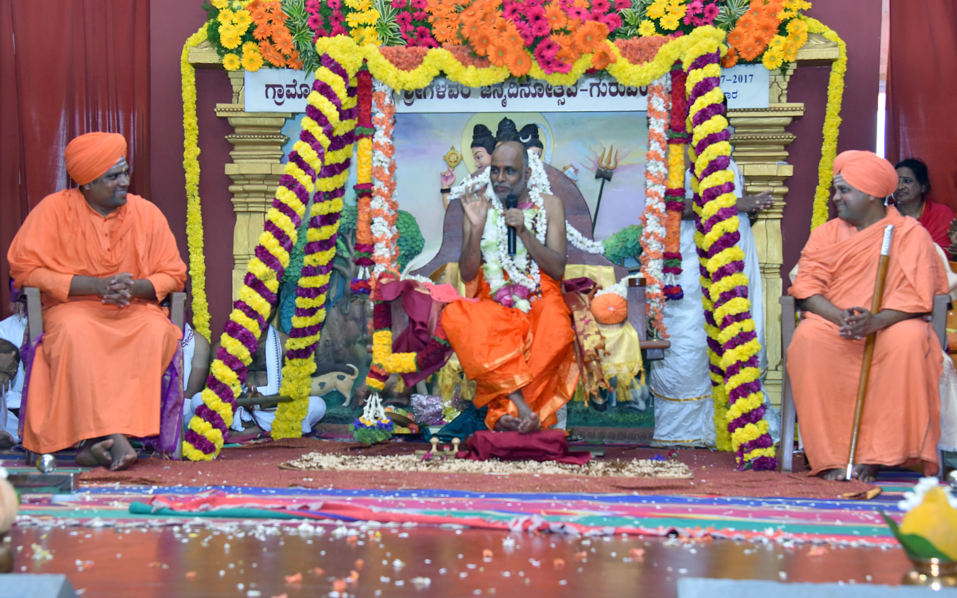 ಬೆಳಗ್ಗೆ ಶ್ರೀ ಗಣಪತಿ ಹವನ, ಆರಾಧ್ಯ ದೇವರಿಗೆ ವಿಶೇಷ ಪೂಜೆ, ವನಮಹೋತ್ಸವ, ನವಧಾನ್ಯದಿಂದ ಸ್ವಾಮೀಜಿಯವರ ತುಲಾಭಾರ ಮತ್ತು ಸ್ವಾಮೀಜಿಯವರ ಮಾತೃಶ್ರೀ ಅಂತಕ್ಕೆಯವರಿಂದ ಉಯ್ಯಾಲೆ ಸೇವೆ, ಭಕ್ತರಿಂದ, ಗುರುಬಂಧುಗಳಿಂದ, ವಿವಿಧ ಸಂಘ ಸಂಸ್ಥೆಗಳಿಂದ ಗುರುವಂದನಾ ಕಾರ್ಯಕ್ರಮ ಜರುಗಿತು. ಬಾಲವಿಕಾಸ ಕೇಂದ್ರದ ಪುಟಾಣಿಗಳಿಂದ ಗುರು ನಮನ ಕಾರ್ಯಕ್ರಮ ನಡೆಯಿತು.
