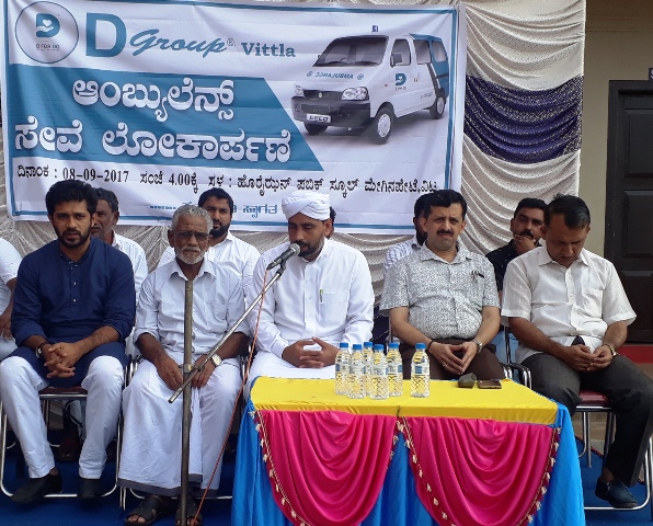 ವಿಟ್ಲದ “ಡಿ ಗ್ರೂಪ್” ವತಿಯಿಂದ ಉಚಿತ ಸೇವೆಯ ಆಂಬ್ಯುಲೆನ್ಸ್ ವಾಹನವನ್ನು ವಿಟ್ಲದಲ್ಲಿ ಲೋಕಾರ್ಪಣೆಗೊಳಿಸಲಾಯಿತು.