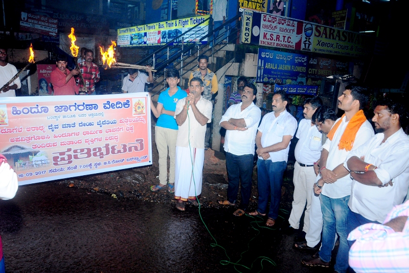 ಪುತ್ತೂರಿನಲ್ಲಿ ದೇಯಿ ಬೈದೆತಿಯ ಪುತ್ಹಳಿಯನ್ನು ಅಪವಿತ್ರಗೊಳಿಸಿ ಹಿಂದೂ ಸಮಾಜಕ್ಕೆ ಅವಮಾನ ಮಾಡಿದ ಆರೋಪಿಯ ವಿರುದ್ದ ಹಿಂದೂ ಜಾಗರಣಾ ವೇದಿಕೆಯ ಬಂಟ್ವಾಳ ತಾಲೂಕು ಘಟಕದ ವತಿಯಿಂದ ಬಿಸಿರೋಡಿನ ಬಸ್ ನಿಲ್ದಾಣದಲ್ಲಿ ದೊಂದಿ ಹಿಡಿದು ಪ್ರತಿಭಟನೆ ನಡೆಯಿತು.
