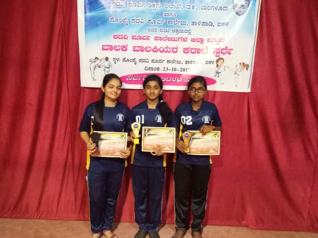 ಬಂಟ್ವಾಳ ಶ್ರೀ ವೆಂಕಟರಮಣ ಸ್ವಾಮಿ ಪದವಿಪೂರ್ವ ಕಾಲೇಜಿನ ವಿದ್ಯಾರ್ಥಿನಿಯರಾದ ರಿಯಾ ಜೇಷ್ಮಾ ಅಂದ್ರಾದೆ (ದ್ವಿತೀಯ ವಿಜ್ಞಾನ ವಿಭಾಗ), ಸಹನಾ ಶೆಟ್ಟಿ (ಪ್ರಥಮ ವಾಣಿಜ್ಯ ವಿಭಾಗ) ಹಾಗೂ ಸೋನಿ ಶೆಟ್ಟಿ (ಪ್ರಥಮ ವಾಣಿಜ್ಯ ವಿಭಾಗ) ಪದವಿಪೂರ್ವ ಶಿಕ್ಷಣ ಇಲಾಖೆ ದ.ಕ., ಮಂಗಳೂರು ಹಾಗೂ ಪೊಂಪೈ ಪದವಿ ಪೂರ್ವ ಕಾಲೇಜು, ತಾಳಿಪಾಡಿ, ಐಕಳ ಜಂಟಿ ಆಶ್ರಯದಲ್ಲಿ ನಡೆದ ಪದವಿಪೂರ್ವ ಕಾಲೇಜುಗಳ ಜಿಲ್ಲಾ ಮಟ್ಟದ ಬಾಲಕಿಯರ ಕರಾಟೆ ಸ್ಪರ್ಧೆಯಲ್ಲಿ ಪ್ರಥಮ ಸ್ಥಾನವನ್ನು ಗಳಿಸಿದ್ದಾರೆ.