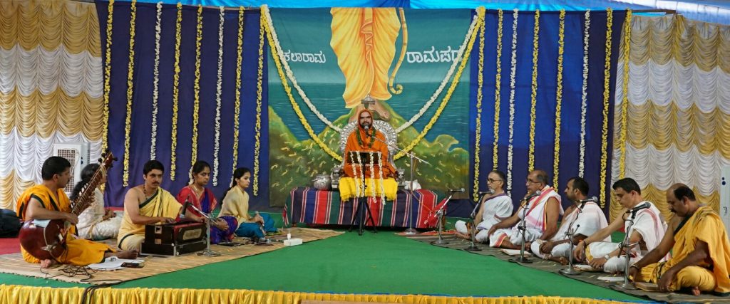 ವೇದಮೂರ್ತಿ ಶ್ರುತಿಸಾಗರ ಪಳ್ಳತ್ತಡ್ಕ ಶಂಕರನಾರಾಯಣ ಭಟ್ಟ ಘನಪಾಠಿಗಳು, ವೇದಮೂರ್ತಿ ಪಕಳಕುಂಜ ಚಾವಡಿಬಾಗಿಲು ಶಂಭು ಭಟ್ಟರು, ವೇದಮೂರ್ತಿ ಪಳ್ಳತ್ತಡ್ಕ ಶಶಿಧರಭಟ್ಟರು, ವೇದಮೂರ್ತಿ ಮುರ ಮುಕುಂದ ಶರ್ಮಾ, ವೇದಮೂರ್ತಿ ನರಸಿಂಹ ಭಟ್ ಮಿತ್ತೂರು ವೇದಗಳನ್ನು ಪಠಿಸಿದರು. ಸಹಗಾಯನದಲ್ಲಿ ದೀಪಿಕಾ ಭಟ್, ಪೂಜಾ ಭಟ್ ಸಹಕರಿಸಿದರು. ಹಾರ್ಮೋನಿಯಂನಲ್ಲಿ ಪ್ರಜ್ಞಾನಲೀಲಾಶುಕ ಉಪಾಧ್ಯಾಯ, ಸಿತಾರ್ನಲ್ಲಿ ಸುಬ್ರಹ್ಮಣ್ಯ ಹೆಗಡೆ ಇದ್ದರು. ಅನುರಾಧಾ ಪಾರ್ವತಿ ಕಾರ್ಯಕ್ರಮ ನಿರೂಪಿಸಿದರು.