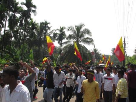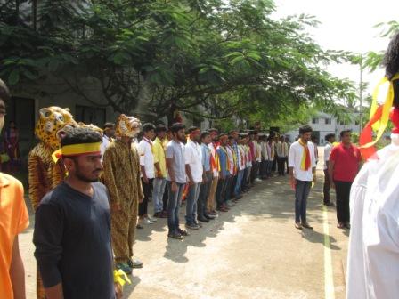 ಕನ್ನಡದ ಹಿರಿಮೆಯ ಹಾಡುಗಳನ್ನು ಹಾಡುತ್ತ, ಘೋಷಣೆಗಳನ್ನು ಕೂಗುತ್ತ ಮೆರವಣಿಗೆಯಲ್ಲಿ ವಿದ್ಯಾರ್ಥಿಗಳು ಸಾಗಿ ಬಂದರು. ಕಾಲೇಜಿನ ಪರಿಸರವನ್ನು ಕನ್ನಡದ ಬಾವುಟಗಳಿಂದ ಅಲಂಕರಿಸಲಾಗಿತ್ತು.