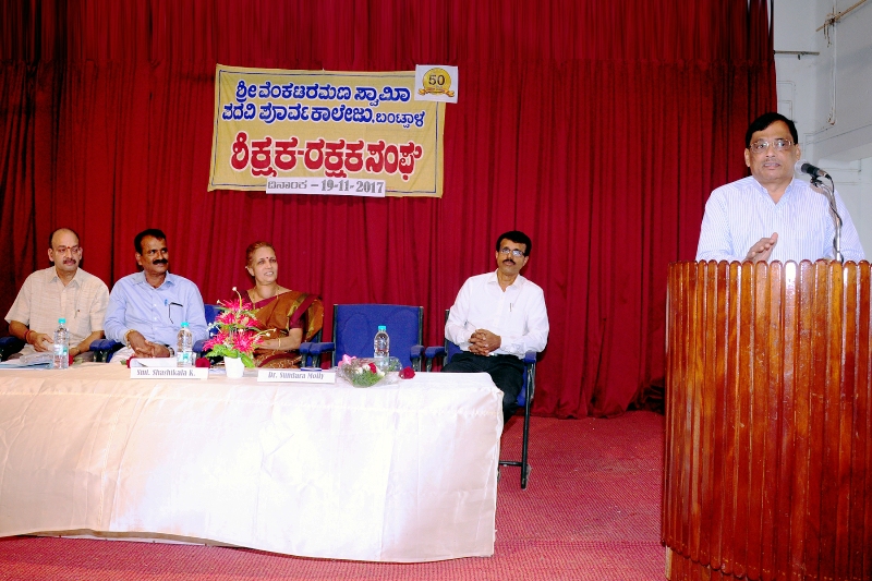ಶ್ರೀ ವೆಂಕಟರಮಣ ಸ್ವಾಮೀ ಪದವಿ ಪರ್ವ ಕಾಲೇಜಿನಲ್ಲಿ ನಡೆದ 2017-18ನೇ ಸಾಲಿನ ರಕ್ಷಕ-ಶಿಕ್ಷಕ ಸಂಘದ ವಾರ್ಷಿಕ ಮಹಾಸಭೆಯಲ್ಲಿ ಮುಖ್ಯ ಅತಿಥಿಯಾಗಿ ಮಾತನಾಡಿದರು.