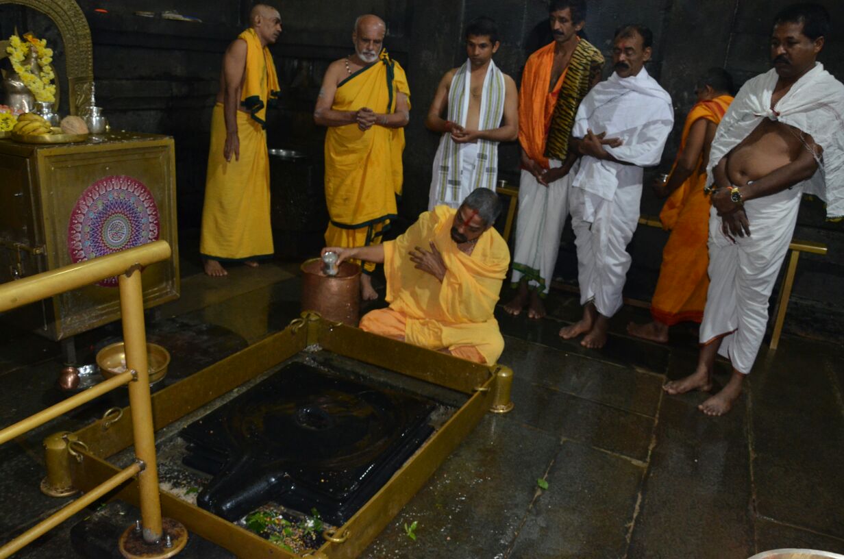ಶ್ರೀ ದೇವಾಲಯದ ಆಡಳಿತಾಧಿಕಾರಿ ಜಿ. ಕೆ. ಹೆಗಡೆ ದೇವಾಲಯದ ಪರವಾಗಿ ಪೂಜ್ಯರಿಗೆ ಫಲ ಸಮರ್ಪಿಸಿ , ಶಾಲು ಹೊದೆಸಿ, ತಾಮ್ರಪತ್ರ ಸ್ಮರಣಿಕೆ ನೀಡಿ, ಗೌರವ ಸಲ್ಲಿಸಿದರು. ಉಪಾಧಿವಂತ ಮಂಡಳಿ ಸದಸ್ಯರು ಉಪಸ್ಥಿತರಿದ್ದರು. ವೇ. ವಿಶ್ವನಾಥ್ ಭಟ್ ಬಾಳೆಹಿತ್ಲು ಪೂಜಾ ಕೈಂಕರ್ಯ ನೆರವೇರಿಸಿದರು.