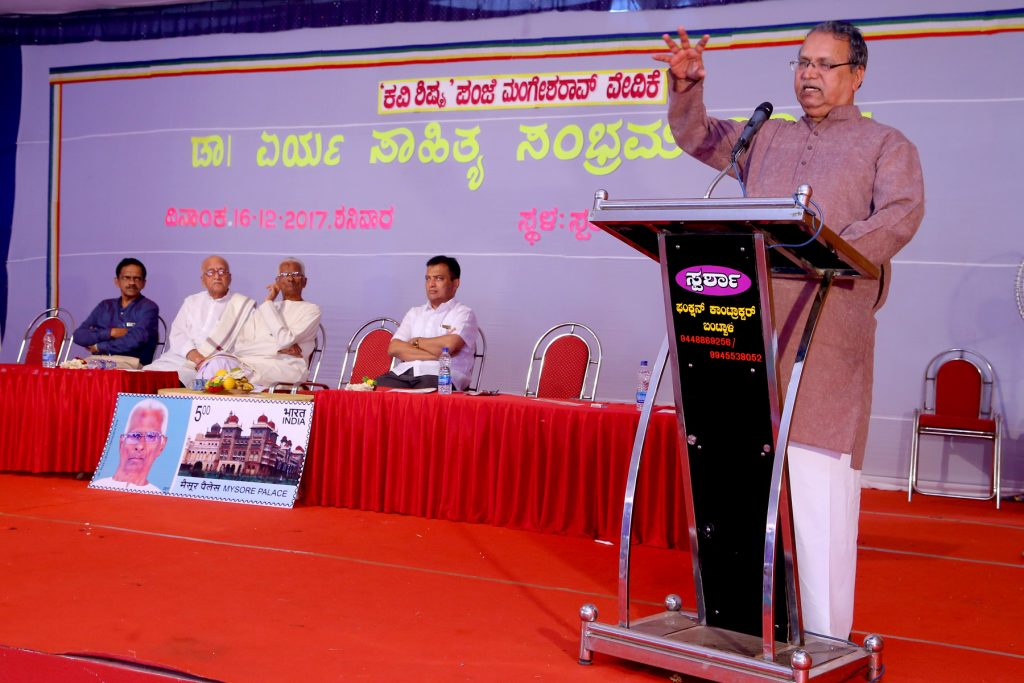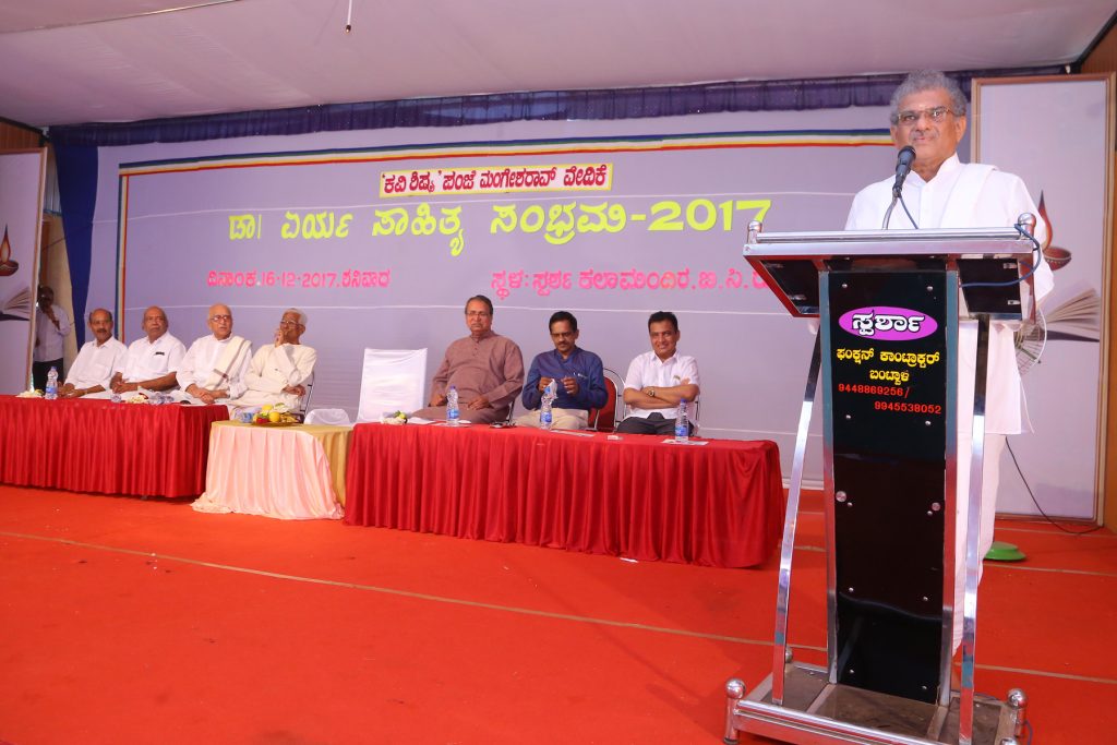 ಆಶಯ ನುಡಿಗಳನ್ನಾಡಿದ ಹಿರಿಯ ಸಾಹಿತಿ ಡಾ. ಏರ್ಯ ಲಕ್ಷ್ಮೀನಾರಾಯಣ ಆಳ್ವ, ಮನುಷ್ಯನಲ್ಲಿ ಮನುಷ್ಯತ್ವ ತುಂಬಬೇಕಾದರೆ ಸಜ್ಜನರ ಸಂಘ ಮಾಡಬೇಕು, ಪುಸ್ತಕ ಓದಬೇಕು ಎಂದು ಯುವಜನರಿಗೆ ಹಿತವಚನ ಹೇಳಿದರು. ಪ್ರಪಂಚದ ಎಲ್ಲ ಒಳ್ಳೆಯ ವಿಚಾರಗಳು ನಮ್ಮೆಡೆಗೆ ಬರಲಿ, ಇಂದು ವೈಜ್ಞಾನಿಕ ಬೆಳವಣಿಗೆಗಳು ಮನುಷ್ಯನ ಹಾದಿ ತಪ್ಪಿಸುವಂತಾಗುತ್ತದೆ ಎಂದು ಕಳವಳ ವ್ಯಕ್ತಪಡಿಸಿದರು.
