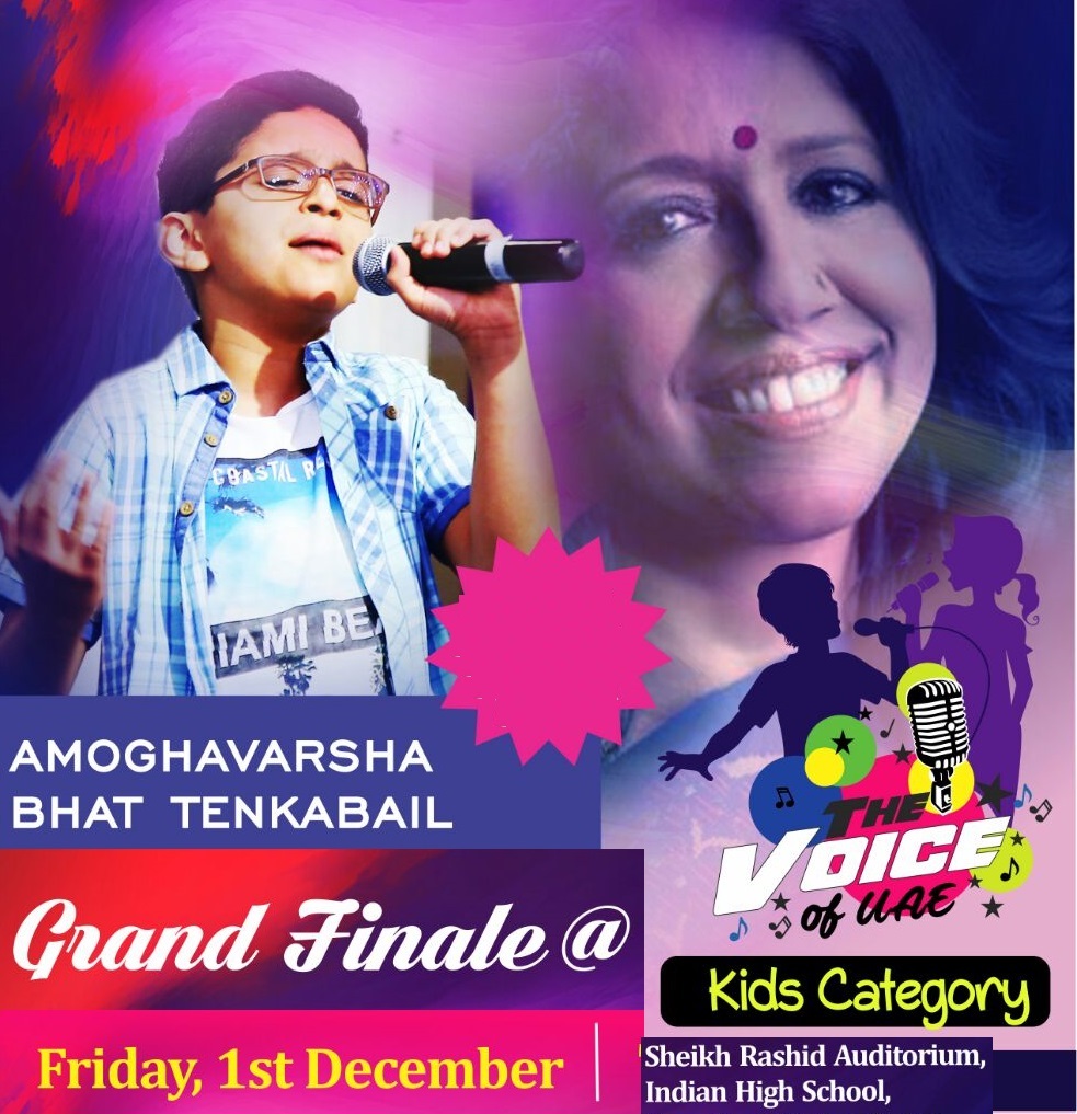 ದುಬೈಯ ಎಸ್ ಕೆ ಎಸ್ ಇವೆಂಟ್ಸ್ ಇವರು ಆಯೋಜಿಸುವ ಆರರಿಂದ ಹದಿನೇಳು ವಯಸ್ಸಿನ ಸಂಯುಕ್ತ ಅರಬ್ ಸಂಸ್ಥಾನದ ( ಯು.ಎ ಇ ) ನಿವಾಸಿ ಮಕ್ಕಳು ಹಿಂದಿ ಭಾಷೆಯ ಚಲನಚಿತ್ರ ಹಾಡುಗಳನ್ನು ಹಾಡುವ ರಾಷ್ಟ್ರೀಯ ಮಟ್ಟದ ಸ್ಪರ್ಧೆ “ವಾಯ್ಸ್ ಆಫ್ ಯು ಎ ಇ – ಕಿಡ್ಸ್ ಕೆಟಗರಿ ” .