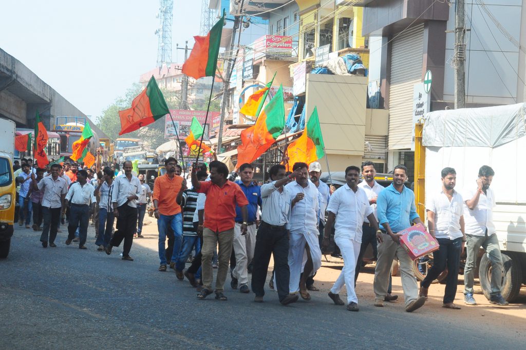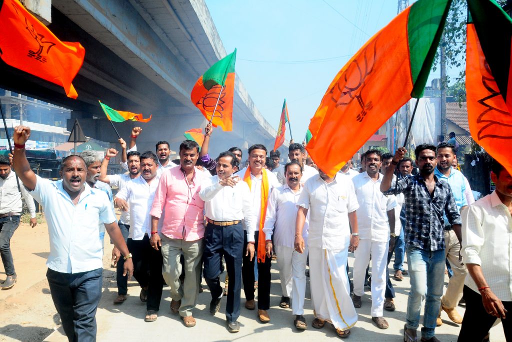 ನಾರಾಯಣಗುರು ವೃತ್ತದಿಂದ ಕಾಂಕ್ರೀಟ್ ಕಾಮಗಾರಿ ನಡೆಯುತ್ತಿರುವ ಸರ್ವೀಸ್ ರಸ್ತೆಯಲ್ಲಿ ಸಾಗಿ ಬಳಿಕ ಬಿಜೆಪಿ ಕಚೇರಿಗೆ ಸಾಗುವ ಸಂದರ್ಭ, ಈ ಬಾರಿಯ ಬಂಟ್ವಾಳ ಕ್ಷೇತ್ರದ ಚುನಾವಣಾ ಅಭ್ಯರ್ಥಿ ಎಂದೇ ಬಿಂಬಿತವಾಗಿರುವ ರಾಜೇಶ್ ನಾಯ್ಕ್ ಉಳಿಪ್ಪಾಡಿಗುತ್ತು ಅವರನ್ನು ಎತ್ತಿಕೊಂಡು ಜಯಘೋಷ ಹಾಕುತ್ತಾ ಸಂಭ್ರಮಿಸಿದ ಕಾರ್ಯಕರ್ತರ ವಿಜಯೋತ್ಸಾಹದ ಸಂಭ್ರಮದಲ್ಲಿ ಇತ್ತೀಚೆಗಷ್ಟೇ ಕಾಂಗ್ರೆಸ್ ತೊರೆದು ಬಿಜೆಪಿ ಸೇರಿದ ಮುಖಂಡ ಹರಿಕೃಷ್ಣ ಬಂಟ್ವಾಳ, ಕ್ಷೇತ್ರ ಬಿಜೆಪಿ ಅಧ್ಯಕ್ಷ ಬಿ.ದೇವದಾಸ ಶೆಟ್ಟಿ ಸಾಥ್ ನೀಡಿದರು.