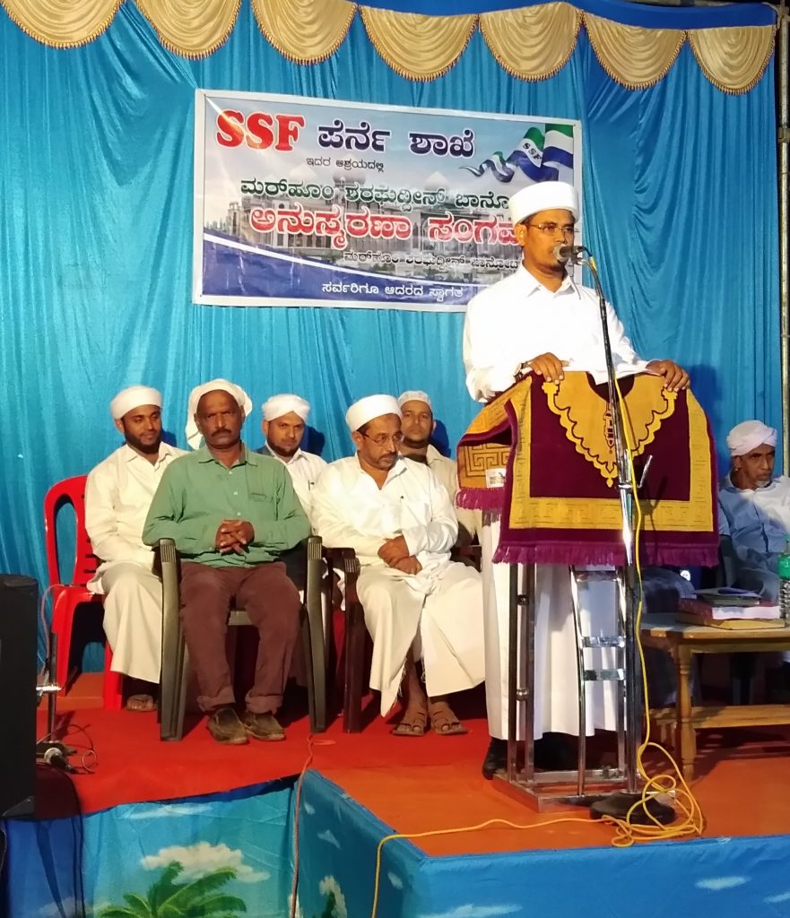 ಎಸ್ಸೆಸ್ಸೆಫ್ ಹಾಗೂ ಎಸ್ ವೈ ಎಸ್ ಪೆರ್ನೆ ಶಾಖೆ ವತಿಯಿಂದ ಪೆರ್ನೆ ಸುನ್ನೀ ಸೆಂಟರ್ ವಠಾರದಲ್ಲಿ ನಡೆದ ಮರ್ಕಝ್ ರೂಬಿ ಜುಬಿಲಿ ಪ್ರಚಾರ ಸಮ್ಮೇಳನ ಹಾಗೂ ಮರ್ಹೂಂ ಶರಫುದ್ದೀನ್ ಬಾನೊಟ್ಟು ಅನುಸ್ಮರಣಾ ಕಾರ್ಯಕ್ರಮದಲ್ಲಿ ಅವರು ಮುಖ್ಯ ಪ್ರಭಾಷಣಗೈದರು.
