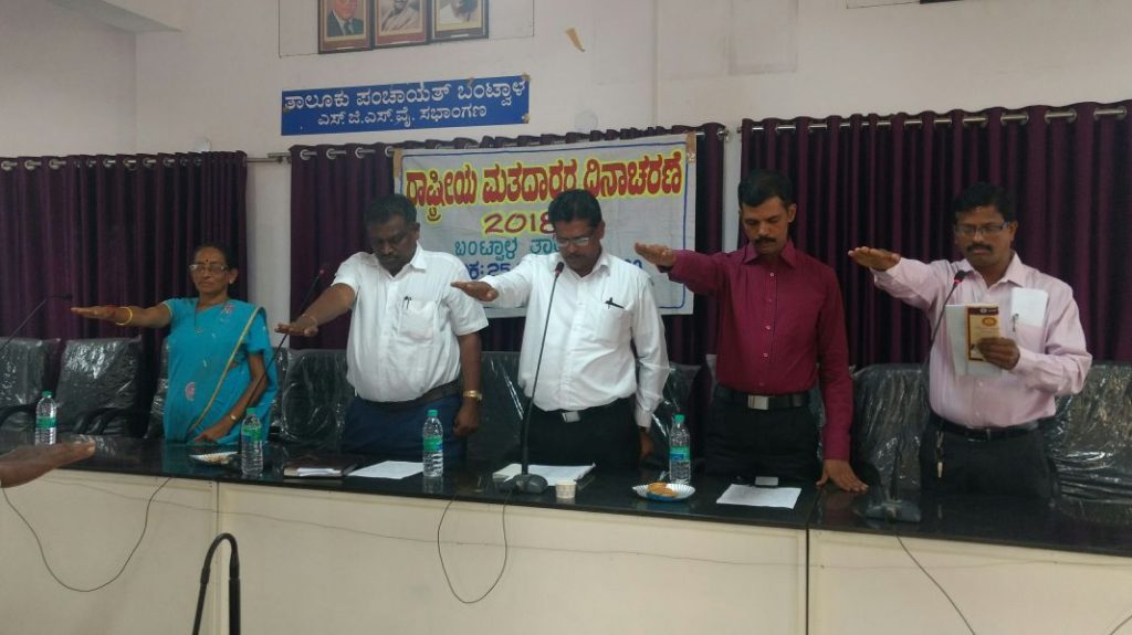 ಕಂದಾಯ ನಿರೀಕ್ಷಕ ರಾಮ ಕಾಟಿಪಳ್ಳ ಸ್ವಾಗತಿಸಿದರು. ಶಿಕ್ಷಣ ಸಂಯೋಜಕ ಪ್ರಕಾಶ್, ತಾಪಂ ಮ್ಯಾನೇಜರ್ ಶಾಂಭವಿ ಉಪಸ್ಥಿತರಿದ್ದ ಕಾರ್ಯಕ್ರಮದ ಅಧ್ಯಕ್ಷತೆಯನ್ನು ಬಂಟ್ವಾಳ ತಹಶೀಲ್ದಾರ್ ಪುರಂದರ ಹೆಗ್ಡೆ ವಹಿಸಿದ್ದರು. ಇದೇ ಸಂದರ್ಭ ಮತದಾರರ ಪ್ರತಿಜ್ಞಾ ವಿಧಿ ಬೋಧಿಸಲಾಯಿತು.