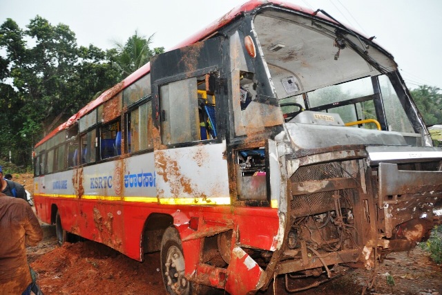 ಉಪ್ಪಿನಂಗಡಿ ಕಡೆಯಿಂದ ಮಂಗಳೂರು ಕಡೆಗೆ ತೆರಳುತ್ತಿದ್ದ ಕೆ.ಎಸ್.ಆರ್.ಟಿ.ಸಿ. ಬಸ್, ಮಾಣಿಯ ಕಾಲೇಜು ಸಮೀಪ ನಿಯಂತ್ರಣ ಕಳೆದು ರಸ್ತೆ ಬದಿಯ ಧರೆಗೆ ಡಿಕ್ಕಿ ಹೊಡೆದು ಉರುಳಿದೆ. ಘಟನೆ ನಡೆಯುತ್ತಿದ್ದಂತೆ ಬಸ್ ಚಾಲಕ ಸ್ಥಳದಿಂದ ಪರಾರಿಯಾಗಿದ್ದಾನೆ. ಹೆದ್ದಾರಿ ಕಾಮಗಾರಿಯ ಹಿಟಾಚಿ ಮೂಲಕ ಬಸ್ಸನ್ನು ಮೇಲೆತ್ತಾಲಾಯಿತು. ಸ್ಥಳಕ್ಕೆ ವಿಟ್ಲ ಪೊಲೀಸರು ಬೇಟಿ ನೀಡಿ ಪರಿಶೀಲನೆ ನಡೆಸಿದರು.