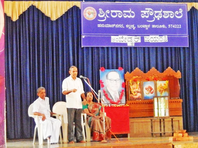 ಕಲ್ಲಡ್ಕ ಶ್ರೀರಾಮ ಪ್ರೌಢಶಾಲೆಯಲ್ಲಿ ನಡೆದ ಅಂಬೇಡ್ಕರ್ ಜಯಂತಿ ಕಾರ್ಯಕ್ರಮದಲ್ಲಿ ಮಾತನಾಡಿದ ಅವರು, ಅಂಬೇಡ್ಕರ್ ಅವರು ತನಗೆ ಎದುರಾದ ಅನೇಕ ಅವಮಾನ, ಅಪಮಾನಗಳನ್ನು ಸಾಧನೆಯ ಮೆಟ್ಟಿಲುಗಳಾಗಿ ಪರಿವರ್ತಿಸಿ ಬೆಳೆದ ಶ್ರೇಷ್ಠರು.ತನ್ನ ಜ್ಞಾನ ಸಾಧನೆಯ ಮೂಲಕ ವಿಶ್ವಕ್ಕೆ ಪರಿಚಿತರಾದ ಇವರು ತಮ್ಮ ಜ್ಞಾನ ಸಾಧನೆಯಿಂದ ಭಾರತದ ಸಂವಿಧಾನ ಕರಡು ಸಮಿತಿ ಅಧ್ಯಕ್ಷರಾಗಿ ಸಂವಿಧಾನ ರಚನೆಯಲ್ಲಿ ಪ್ರಮುಖ ಪಾತ್ರ ವಹಿಸಿದ್ದಾರೆ. ಇಂಥ ಶ್ರೇಷ್ಠರ ಜೀವನ ನಮ್ಮೆಲ್ಲರಿಗೂ ಮಾದರಿ ಎಂದರು.