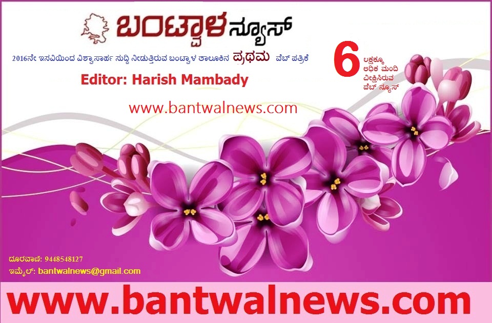 2016ರಲ್ಲಿ ಆರಂಭಿಸಿದ ಬಂಟ್ವಾಳ ತಾಲೂಕಿನ ಮೊದಲ ವೆಬ್ ಪತ್ರಿಕೆ. ಲಕ್ಷಾಂತರ ಮಂದಿ ಓದಿದ್ದಾರೆ, ಓದುತ್ತಿದ್ದಾರೆ. ಸುದ್ದಿಗಳು, ವಿಶ್ಲೇಷಣೆಗೆ ಆದ್ಯತೆ. ಒಂಭತ್ತನೇ ವರ್ಷಕ್ಕೆ ಕಾಲಿಟ್ಟಿರುವ www.bantwalnews.comಗೆ ಆರ್ಥಿಕ ಸಹಕಾರವೂ ಬೇಕು. ಪ್ರಾಯೋಜಕತ್ವ ಅಥವಾ ಜಾಹೀರಾತು ನೀಡುವುದಿದ್ದರೆ 9448548127 ಸಂಪರ್ಕಿಸಬಹುದು. --- ಹರೀಶ ಮಾಂಬಾಡಿ, ಸಂಪಾದಕ