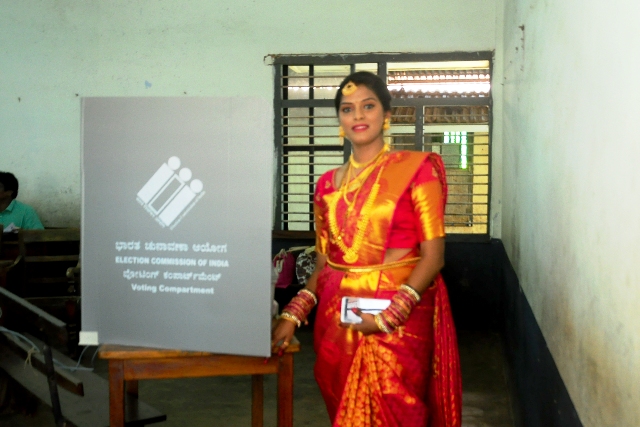 ಬಂಟ್ವಾಳ ಭಂಡಾರಿಬೆಟ್ಟು ನಿವಾಸಿ ಆಶ್ರಿತಾ ಜೆ. ಸಾಲಿಯಾನ್ ಶನಿವಾರ ಬಂಟ್ವಾಳದ ಎಸ್.ವಿ.ಎಸ್. ಹೈಸ್ಕೂಲಿನಲ್ಲಿ ಮತ ಚಲಾಯಿಸಿದರು. ದೆಹಲಿಯಲ್ಲಿ ಕಳೆದ 29ರಂದು ವಿವಾಹವಾಗಿದ್ದ ಇವರು ಮೊಡಂಕಾಪಿನಲ್ಲಿರುವ ವಿವಾಹದ ಔತಣಕೂಟಕ್ಕೆ ತೆರಳುವ ಮುನ್ನ ಮತದಾನ ಚಲಾಯಿಸಿಯೇ ಹೊರಟರು.