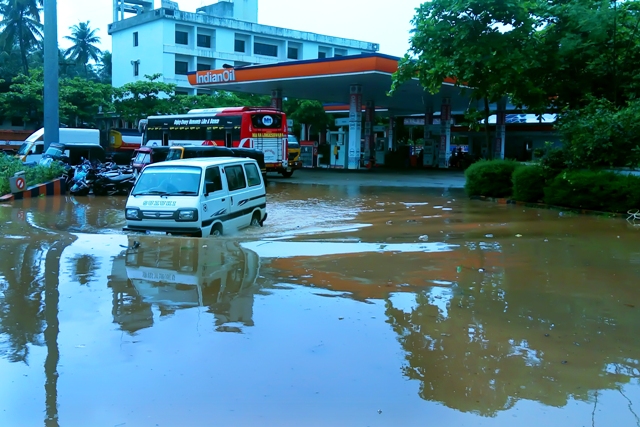 ಬಿ.ಸಿ.ರೋಡಿನ ಶ್ರೀನಿವಾಸ್ ಹೊಟೇಲ್ ಬಳಿ ಪೆಟ್ರೋಲ್ ಪಂಪಿನಲ್ಲಿ ಚರಂಡಿ ಬ್ಲಾಕ್ ಆಗಿ ನೀರು ನಿಂತಿರುವುದು. ಚಿತ್ರ: ದೀಪಕ್ ಸಾಲ್ಯಾನ್, ಬಂಟ್ವಾಳ
