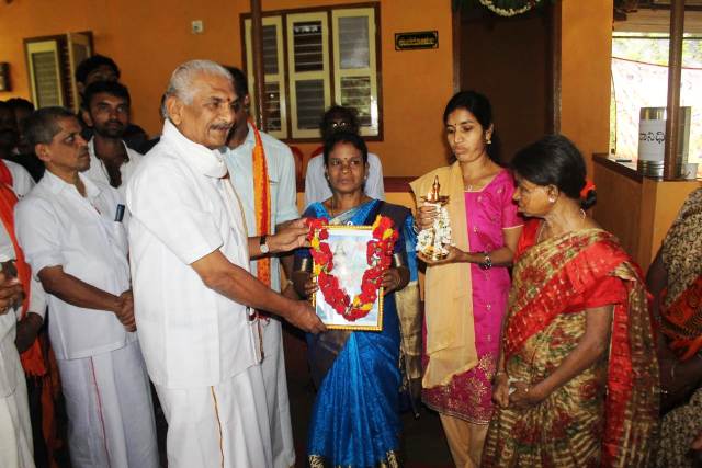ವಿವೇಕಾನಂದ ವಿದ್ಯಾವರ್ಧಕ ಸಂಘದ ಅಧ್ಯಕ್ಷ ಡಾ. ಕಲ್ಲಡ್ಕ ಪ್ರಭಾಕರ ಭಟ್ ಅವರು ನಂದಾದೀಪ ಮತ್ತು ಭಾರತಮಾತೆಯ ಚಿತ್ರವನ್ನು ಮನೆಯೊಡತಿಗೆ ನೀಡುವ ಮೂಲಕ ಶುಭ ಹಾರೈಸಿ ಮನೆ ಹಸ್ತಾಂತರಿಸಿದರು.