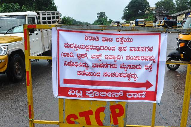 ಶಿರಾಡಿ ಘಾಟಿ ರಸ್ತೆ ದುರಸ್ತಿಯಲ್ಲಿರುವುದರಿಂದ ಘನ ವಾಹನಗಳ ಸಂಚಾರವನ್ನು ನಿಷೇಸಲಾಗಿದ್ದು, ವಾಹನಗಳು ಮೈಸೂರು ರಸ್ತೆ ಕಡೆಯಿಂದ ಸಂಚರಿಸತಕ್ಕದ್ದು.