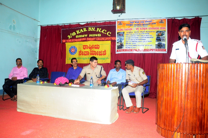 ದ.ಕ.ಜಿಲ್ಲಾ ಪೋಲೀಸ್, ಬಂಟ್ವಾಳ ಸಂಚಾರ ಪೋಲೀಸ್ ಠಾಣೆ ಮತ್ತು ಎನ್.ಸಿ.ಸಿ. ಹಾಗೂ ರಾಷ್ಟ್ರೀಯ ಸೇವಾ ಯೋಜನೆ ಎಸ್.ವಿ.ಎಸ್. ಆಶ್ರಯದಲ್ಲಿ ಸಂಚಾರ ನಿಯಂತ್ರಣ ಹಾಗೂ ರಸ್ತೆ ಸುರಕ್ಷತಾ ಮಾಸಾಚರಣೆ ಅಂಗವಾಗಿ ಬಂಟ್ವಾಳ ಎಸ್.ವಿ.ಎಸ್ ಪದವಿ ಕಾಲೇಜಿನ ವಿದ್ಯಾರ್ಥಿಗಳಿಗೆ ರಸ್ತೆ ನಿಯಂತ್ರಣ ಸುರಕ್ಷತೆಯ ಬಗ್ಗೆ ಮಾಹಿತಿ ಕಾರ್ಯಕ್ರಮ ಕಾಲೇಜಿನಲ್ಲಿ ನಡೆಯಿತು.