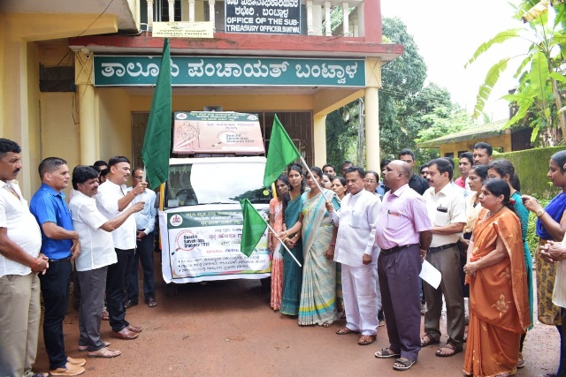 ಕೇಂದ್ರ ಸರಕಾರವು ಸ್ವಚ್ಛ ಭಾರತ್ ಮಿಷನ್ (ಗ್ರಾ) ಯೋಜನೆಯಡಿ ಗ್ರಾಮ ನೈರ್ಮಲ್ಯವನ್ನು ಸುಧಾರಣೆ ಮಾಡುವ ನಿಟ್ಟಿನಲ್ಲಿ ಹಮ್ಮಿಕೊಂಡಿರುವ ಸ್ವಚ್ಛ ಸರ್ವೇಕ್ಷಣ ರಥಯಾತ್ರೆಯ ವಾಹನಕ್ಕೆ ಬಂಟ್ವಾಳ ತಾಲೂಕು ಪಂಚಾಯತ್ ಕಚೇರಿ ಆವರಣದಲ್ಲಿ ಬುಧವಾರ ಶಾಸಕ ರಾಜೇಶ್ ನಾಯ್ಕ್ ಅವರು ಹಸಿರು ನಿಶಾನೆ ತೋರಿಸುವ ಮೂಲಕ ಚಾಲನೆ ನೀಡಿದರು.