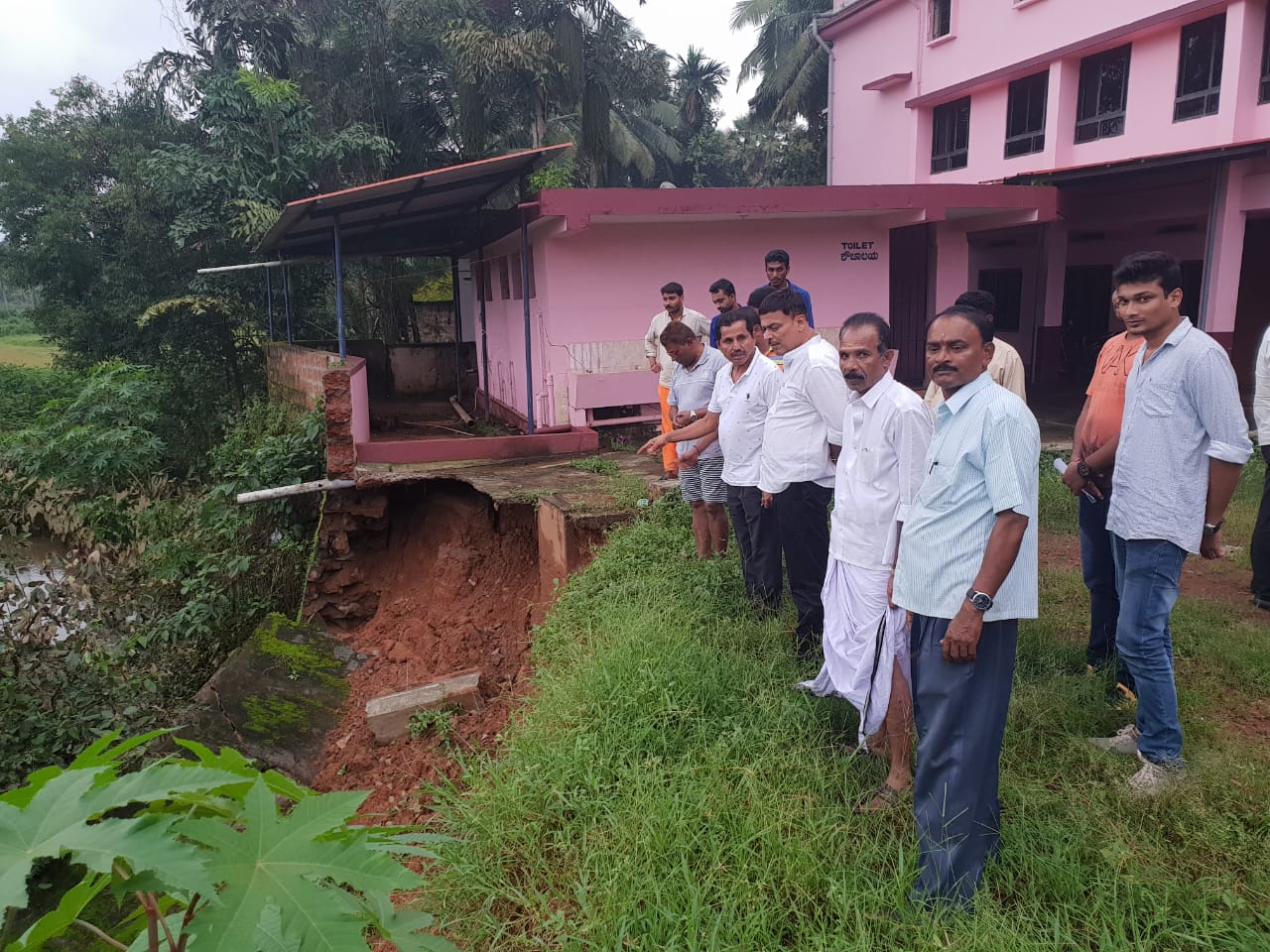 ಕಳೆದ ನಾಲ್ಕು ದಿನಗಳಿಂದ ಸುರಿದ ಮಳೆ ಬುಧವಾರ ಸಂಜೆ ತೀವ್ರಗೊಂಡಿದ್ದು, ಬಿ.ಸಿ.ರೋಡಿನ ಗಾಣದಪಡ್ಪವಿನಲ್ಲಿರುವ ಬ್ರಹ್ಮಶ್ರೀ ನಾರಾಯಣಗುರುಮಂದಿರದ ಅವರಣಗೋಡೆ ಬುಧವಾರ ಕುಸಿಯಿತು. ಇದರಿಂದ ಸುಮಾರು 15 ಲಕ್ಷ ರೂ. ನಷ್ಟ ಸಂಭವಿಸಿದ್ದು, ಬಂಟ್ವಾಳ ಶಾಸಕ ಯು.ರಾಜೇಶ್ ನಾಯ್ಕ್ ಅವರು ಸಂಜೆ ಸ್ಥಳಕ್ಕೆ ಭೇಟಿ ನೀಡಿ ಪರಿಶೀಲನೆ ನಡೆಸಿದ್ದಾರೆ. ಸ್ಥಳ ದಿಂದಲೇ ಸಣ್ಣ ನೀರಾವರಿ ಇಲಾಖಾ ಇಂಜಿನಿಯರ್ ಅವರನ್ನು ದೂರವಾಣಿ ಮೂಲಕ ಸಂಪರ್ಕಿಸಿದ ಶಾಸಕರು,ಅವರಣಗೋಡೆಗೆ ತಕ್ಷಣ ಅಂದಾಜುಪಟ್ಟಿ ತಯಾರಿಸುವಂತೆ ಸೂಚಿಸಿದರು.