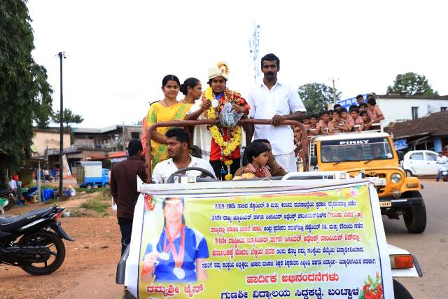 ಸಂಗಬೆಟ್ಟು-ಸಿದ್ಧಕಟ್ಟೆಯಲ್ಲಿ ಮಂಗಳವಾರ ಮೆರವಣಿಗೆ ಮೂಲಕ ಸ್ವಾಗತಿಸಲಾಯಿತು. ಈ ಸಂದರ್ಭ ಶಾಲಾ ಸಂಚಾಲಕ ವಿಜಯ ಕುಮಾರ್ ಚೌಟ, ಶಾಲಾ ಮುಖ್ಯ ಶಿಕ್ಷಕಿ ಸಬಿತಾ ಲವೀನಾ, ದೈಹಿಕ ಶಿಕ್ಷಣ ಶಿಕ್ಷಕರಾದ ಸತೀಶ್, ಜಯಂತ್, ಕಾಲೇಜು ಪ್ರಾಂಶುಪಾಲ ಸಂತೋಷ್ ಕುಮಾರ್, ಕುಕ್ಕಿಪಾಡಿ ಗ್ರಾ.ಪಂ. ಅಧ್ಯಕ್ಷ ದಿನೇಶ್ ಸುಂದರ ಶಾಂತಿ, ಸಂಗಬೆಟ್ಟು ಗ್ರಾ.ಪಂ. ಸದಸ್ಯ ಮಾಧವ ಶೆಟ್ಟಿಗಾರ್, ಮಾಜಿ ತಾ.ಪಂ. ಸದಸ್ಯ ಪ್ರಭಾಕರ ಪ್ರಭು, ಕ್ರೀಡಾಪಟು ಜಯ ನಾಯ್ಕ, ಡಾ. ಪ್ರಭಾಚಂದ್ರ ಜೈನ್, ಡಾ. ಸುಧೀಪ್ ಕುಮಾರ್, ಉದ್ಯಮಿಗಳಾದ ಪ್ರಶಾಂತ್ ಶೆಟ್ಟಿ, ಭರತ್ ಜೈನ್ ಅಭಿನಂದಿಸಿದರು.