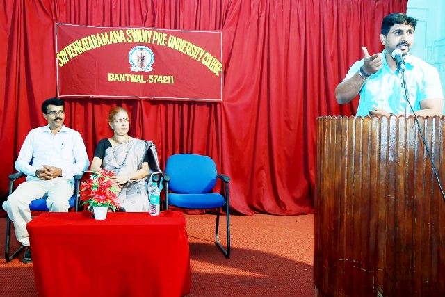 ಬಂಟ್ವಾಳ ಶ್ರೀ ವೆಂಕಟರಮಣ ಸ್ವಾಮೀ ಪದವಿ ಪೂರ್ವ ಕಾಲೇಜು ವಿಜ್ಞಾನ ವಿಭಾಗದ ವಿದ್ಯಾರ್ಥಿಗಳಿಗೆ ಹಮ್ಮಿಕೊಂಡ ’ವ್ಯಕ್ತಿತ್ವ ವಿಕಸನ ಮತ್ತು ಜೀವನ ಕೌಶಲ್ಯಗಳು’ ತರಬೇತಿ ಕಾರ್ಯಕ್ರಮದಲ್ಲಿ ಮಾತನಾಡಿದರು.