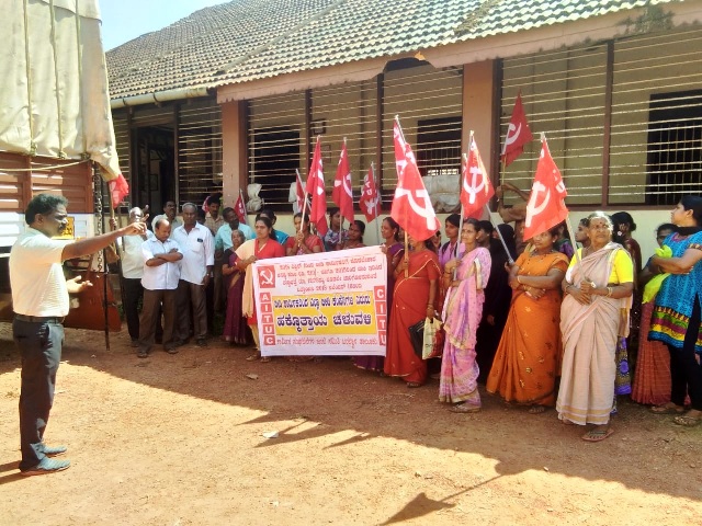 ಕನಿಷ್ಠ ವೇತನ ಹಾಗೂ ತುಟ್ಟಿಭತ್ತೆ ಅತೀ ಶೀಘ್ರ ಪಾಲಿಗೆ ಆಗ್ರಹಿಸಿ ಬೀಡಿ ಕಾರ್ಮಿಕರಿಂದ ಹಕ್ಕೊತ್ತಾಯ ಎಐಟಿಯುಸಿ ಮತ್ತು ಸಿಐಟಿಯು ಕಾರ್ಮಿಕ ಸಂಘಟನೆಗಳ ನೇತೃತ್ವದಲ್ಲಿ ಬೀಡಿ ಕಚೇರಿ ಎದುರು ನಡೆಯಿತು.