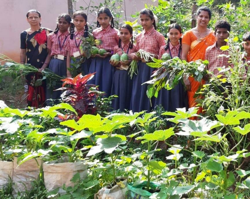 ಇಲ್ಲಿ 70 ಅಡಕೆ ಗಿಡಗಳಿವೆ. ಔಷಧೀಯ ಸಸ್ಯಗಳ ಕೈತೋಟವೇ ಇದೆ. ಹಣ್ಣು, ತರಕಾರಿಗಳನ್ನು ಬೆಳೆಸಲಾಗುತ್ತದೆ. ಶಾಲೆಯ ಪರಿಸರ ಕ್ಲಬ್ ಸಹಿತ ಮಕ್ಕಳೆಲ್ಲರಿಗೂ ಇವುಗಳೊಂದಿಗೆ ಬೆರೆಯುವ ಸಂಭ್ರಮವನ್ನು ಶಿಕ್ಷಕರು ಕಲಿಸಿಕೊಟ್ಟಿದ್ದಾರೆ. ಕುಂಬಳ ಕಾಯಿ, ನುಗ್ಗೆ, ಸೋರೆಕಾಯಿಗಳನ್ನು ಮಕ್ಕಳು ಇಲ್ಲಿ ನೋಡಿ ಕಲಿಯುತ್ತಾರೆ. ಕೆಲವು ಶಾಲೆಗಳಲ್ಲಿ ಮಕ್ಕಳಿಗೆ ನಾಳೆ ಶಾಲೆಗೆ ಬರುವಾಗ ಹಣ್ಣು ತನ್ನಿ ಎಂಬ ಚೀಟಿ ಕೊಡಲಾಗುತ್ತದೆ. ಆದರೆ ಇಲ್ಲಿ ಹಾಗಲ್ಲ, ಶಾಲೆಯಲ್ಲೇ ಹಣ್ಣು, ತರಕಾರಿ ಬೆಳೆಸುವ ಕುರಿತು ಪಾಠ ಮಾಡಲಾಗುತ್ತದೆ. ಅವರಿಂದಲೇಕಟಾವು ಮಾಡಿಸಿ ಫಸಲು ಬೆಳೆಸಿದ ಮಕ್ಕಳಿಗೇ ನೀಡಿ ಅಡುಗೆ ತಯಾರಿಸಿಕೊಂಡು ಬಂದು ಶಾಲೆಯಲ್ಲಿ ಸವಿಯುವ ಅವಕಾಶ ನೀಡಲಾಗಿದೆ. ಸೊಪ್ಪು, ತರಕಾರಿಗಳನ್ನು ಅಡುಗೆಗೆ ಬಳಸುವುದಷ್ಟೇ ಅಲ್ಲ, ಅವುಗಳನ್ನು ಸಾವಯವ ವಿಧಾನದಲ್ಲಿ ಬೆಳೆಸುವುದು ಹೇಗೆ ಎಂಬುದನ್ನೂ ಮಕ್ಕಳು ಕಲಿಯುತ್ತಿದ್ದಾರೆ.
