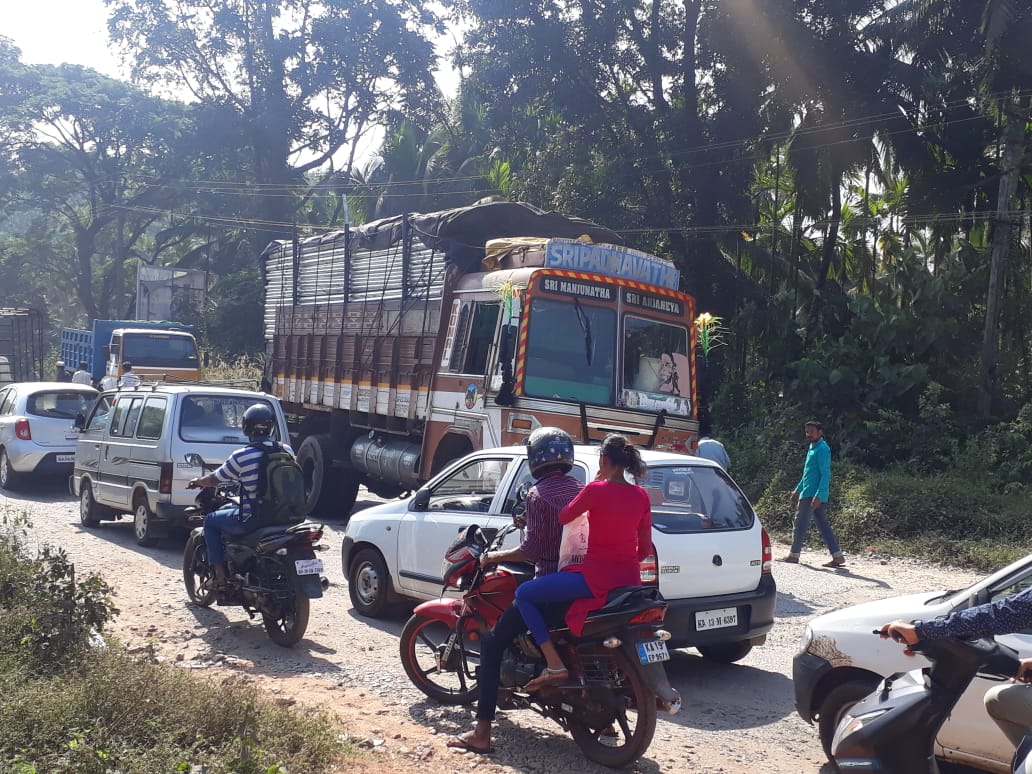 ಮಂಗಳೂರು–ಬೆಂಗಳೂರು ರಾಷ್ಟ್ರೀಯ ಹೆದ್ದಾರಿಯ ಮಾಣಿ ಬಳಿಯ ಹಳೀರ ಎಂಬಲ್ಲಿ ಲಾರಿ ಹಾಳಾಗಿ ರಸ್ತೆ ಮಧ್ಯದಲ್ಲೇ ನಿಂತ ಕಾರಣ ವಾಹನ ಸವಾರರು ಬೆವರಿಳಿಸಬೇಕಾಯಿತು.