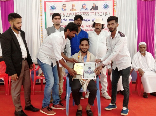 ಪೀಸ್ ಎವರ್ನೆಸ್ ಟ್ರಸ್ಟ್ ಅಧ್ಯಕ್ಷ ಅಲ್ತಾಫ್ ಬಿಳಗುಳ ಜೇಸಿ ಭವನದಲ್ಲಿ ನಡೆದ ಸಮಾರಂಭದಲ್ಲಿ ಪ್ರಶಸ್ತಿ ನೀಡಿ ಗೌರವಿಸಿದರು.