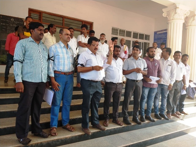 ರಾಯಚೂರಿನ ಮಾನ್ವಿ ತಾಲೂಕಿನ ಗ್ರಾಮ ಲೆಕ್ಕಾಧಿಕಾರಿ ಸಾಹೇಬ್ ಪಾಟೀಲ್ ಅವರ ಹತ್ಯೆಯನ್ನು ಖಂಡಿಸಿ ಬಂಟ್ವಾಳ ತಾಲೂಕು ಕಂದಾಯ ನೌಕರರ ಸಂಘ, ತಾಲೂಕು ಮಟ್ಟದ ಗ್ರಾಮ ಲೆಕ್ಕಾಧಿಕಾರಿಗಳ ಸಂಘ ಹಾಗೂ ತಾಲೂಕು ಗ್ರಾಮ ಸಹಾಯಕರ ಸಂಘದ ವತಿಯಿಂದ ಬಂಟ್ವಾಳ ಮಿನಿ ವಿಧಾನ ಸೌಧದ ಮುಂಭಾಗದಲ್ಲಿ ಸೋಮವಾರ ಕೈಗೆ ಕಪ್ಪುಪಟ್ಟಿ ಕಟ್ಟಿ ಪ್ರತಿಭಟನೆ ನಡೆಯಿತು.