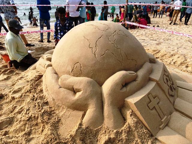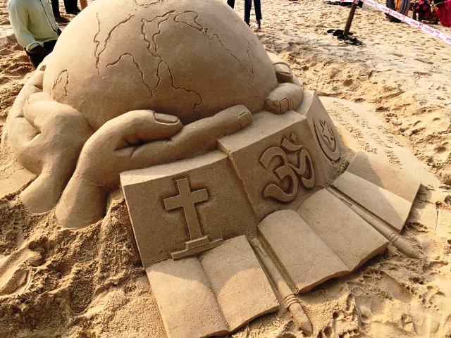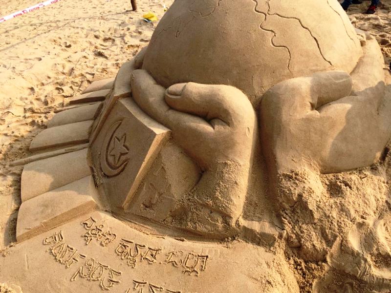 ಪಣಂಬೂರು ಕಡಲ ಕಿನಾರೆಯಲ್ಲಿ ನಡೆಯುತ್ತಿರುವ ಬೀಚ್ ಉತ್ಸವದಲ್ಲಿ ದಕ್ಷಿಣ ಕನ್ನಡ ಜಿಲ್ಲಾ ಕಾರ್ಯನಿರತ ಪತ್ರಕರ್ತರ ಸಂಘದಿಂದ ಬ್ರ್ಯಾಂಡ್ ಮಂಗಳೂರು ಪರಿಕಲ್ಪನೆಯ ಕೋಮು ಸೌಹಾರ್ದತೆ ಸಾರುವ ಮರಳು ಶಿಲ್ಪ ಕಲಾಕೃತಿ ಗಮನ ಸೆಳೆಯಿತು. ಸಂದೇಶ ಮಡಪಾಡಿ, ರವಿ ಹಿರೇಬೆಟ್ಟು ಹಾಗೂ ಪುರಂದರ ತೊಟ್ಟಮ್ ಮರಳಿನ ಕಲಾಕೃತಿ ರಚಿಸಿದ್ದಾರೆ. ಆರು ಗಂಟೆಗಳ ಕಾಲ ಶ್ರದ್ಧೆಯಿಂದ ರೂಪಿಸಿದ ಈ ಮರಳುಶಿಲ್ಪವೀಗ ಆಕರ್ಷಣೆಯ ಕೇಂದ್ರ.