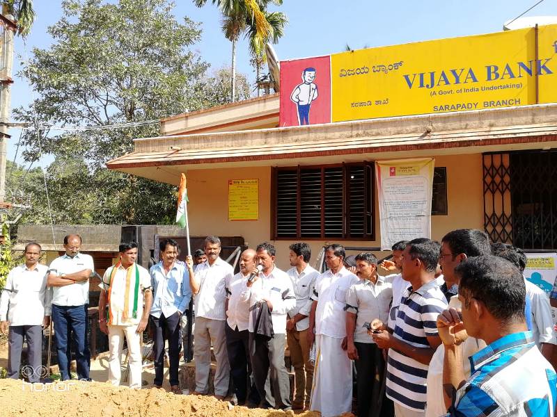 ವಿಜಯಾ ಬ್ಯಾಂಕ್ ಜೊತೆ ಇತರ ಬ್ಯಾಂಕ್ ವಿಲೀನ ವಿರೋಧಿಸಿ ಸರಪಾಡಿಯ ಅಲ್ಲಿಪಾದೆಯಲ್ಲಿ ಬ್ಯಾಂಕ್ ಮುಂಭಾಗ ಕಾಂಗ್ರೆಸ್ ವತಿಯಿಂದ ಪ್ರತಿಭಟನೆ ನಡೆಯಿತು. ಪ್ರಮುಖರಾದ ನಾವೂರ ಗ್ರಾಮ ಪಂಚಾಯತ್ ಅಧ್ಯಕ್ಷರಾದ ಗುಲಾಬಿ ಚಂದಪ್ಪ, ತಾಲೂಕು ಪಂಚಾಯತ್ ಸದಸ್ಯರಾದ ಸ್ವಪ್ನ ವಿಶ್ವನಾಥ್ ಪೂಜಾರಿ, ವಲಯ ಅಧ್ಯಕ್ಷರುಗಳಾದ ಆದಂ ಕುಂಞ, ಜಿಪಂ ಸದಸ್ಯ ಪದ್ಮಶೇಖರ್ ಜೈನ್, ದಯಾನಂದ ಶೆಟ್ಟಿ ಅಮೈ, ಪ್ರಮುಖರಾದ ಸಂಪತ್ ಕುಮಾರ್ ಶೆಟ್ಟಿ, ವಿನ್ಸೆಂಟ್ ಪಿಂಟೊ ,ಸುವರ್ಣ ಕುಮಾರ್ ಜೈನ್, ಶಿವಪ್ಪ ಪೂಜಾರಿ, ಅಸುಂತ ಮರಿಯ, ಶಿವರಾಮ್ ಆಳ್ವ, ಹುಸೈನ್ ಪೆರಿಯಪಾದೆ, ಡೆನ್ಜಿಲ್ ಅಲ್ಲಿಪಾದೆ, ನಾರಾಯಣ ಸಾಲಿಯಾನ್, ಫಾರುಕ್, ಪುವಪ್ಪ ಪೂಜಾರಿ, ಆಗ್ನೇಲ್ ಜೆರೋಮ್ ಮತ್ತಿತರರು ಉಪಸ್ಥಿತರಿದ್ದರು.
