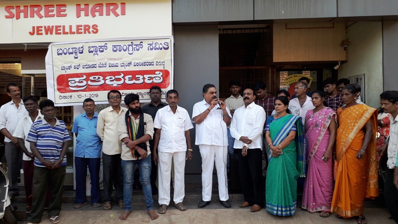 ಬಂಟ್ವಾಳ ವಿಜಯಾ ಬ್ಯಾಂಕ್ ಎದುರು ಬ್ಯಾಂಕ್ ವಿಲೀನ ಕುರಿತು ನಡೆದ ಕಾಂಗ್ರೆಸ್ ಪ್ರತಿಭಟನೆಯಲ್ಲಿ ಮಾಜಿ ಸಚಿವ ಬಿ.ರಮಾನಾಥ ರೈ ಮಾತನಾಡಿದರು. ಈ ಸಂದರ್ಭ ಬ್ಲಾಕ್ ಕಾಂಗ್ರೆಸ್ ಅಧ್ಯಕ್ಷ ಬೇಬಿ ಕುಂದರ್, ಪ್ರಮುಖರಾದ ವೆಂಕಪ್ಪ ಪೂಜಾರಿ, ಮಲ್ಲಿಕಾ ಶೆಟ್ಟಿ ಮತ್ತಿತರರು ಉಪಸ್ಥಿತರಿದ್ದರು.