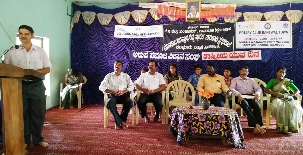 ಬೊಂಡಾಲ ಜಗನ್ನಾಥ ಶೆಟ್ಟಿ ಸ್ಮಾರಕ ಸರಕಾರಿ ಪೌಢಶಾಲೆ ಶಂಭೂರು ಇಲ್ಲಿ ಅಳುಪ ಸಮಾಜ ವಿಜ್ಞಾನ ಸಂಘ, ಜೇಸಿಐ ಜೋಡುಮಾರ್ಗ ನೇತ್ರಾವತಿಯ ಯುವಜೇಸಿ ವಿಭಾಗ, ಇಂಟರ್ಯಾಕ್ಟ್ ಕ್ಲಬ್, ರೋಟರಿ ಕ್ಲಬ್ ಬಂಟ್ವಾಳ ಟೌನ್ ಇದರ ಆಶ್ರಯದಲ್ಲಿ ನಡೆದ ಯುವ ದಿನಾಚರಣೆಯ ಕಾರ್ಯಕ್ರಮದಲ್ಲಿ ಮಾತನಾಡುತ್ತಿದ್ದರು.