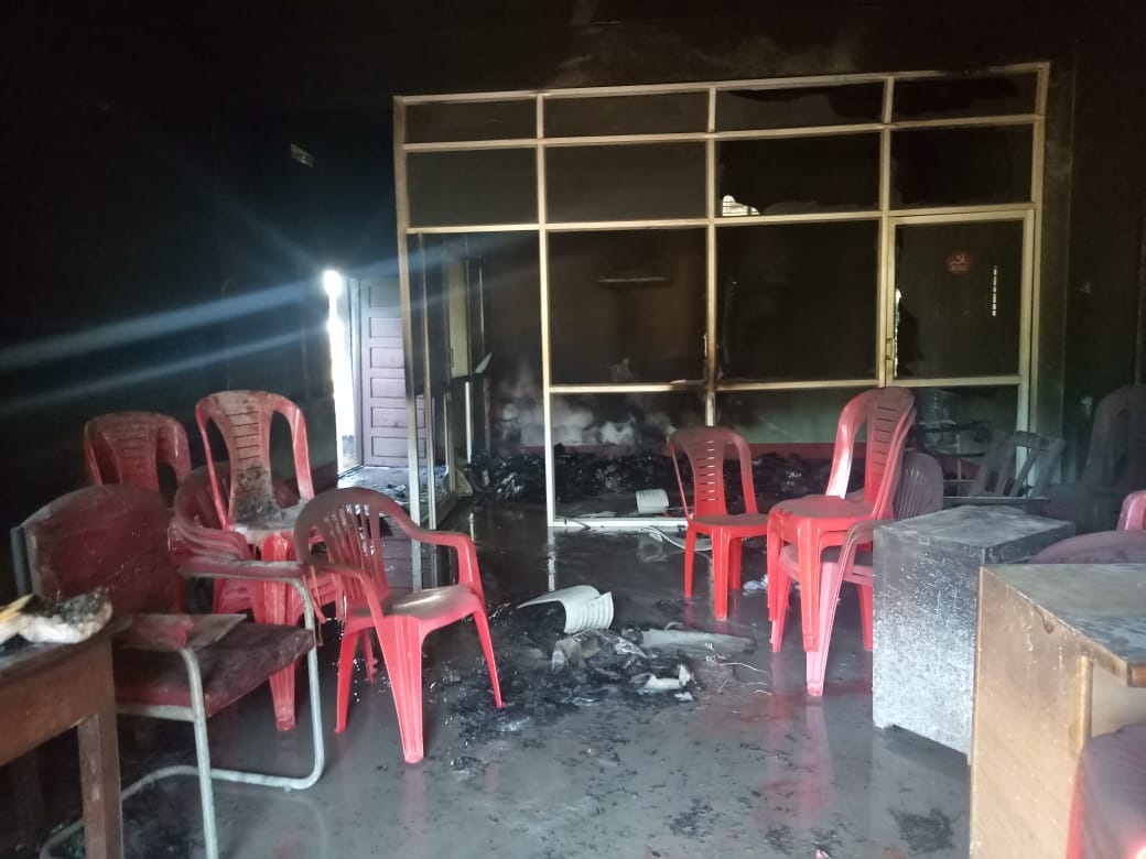 ದುಷ್ಕರ್ಮಿಗಳು ಬೆಂಕಿ ಹಾಕಿದ್ದ ಹಿನ್ನೆಲೆಯಲ್ಲಿ ಸುಟ್ಟು ಹೋಗಿದ್ದ ಸಿಪಿಐ ಕಚೇರಿ.