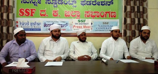 ಸುದ್ದಿಗೋಷ್ಠಿಯಲ್ಲಿ ಎಸ್ಸೆಸ್ಸೆಫ್ ಜಿಲ್ಲಾಧ್ಯಕ್ಷ ಇಬ್ರಾಹಿಂ ಸಖಾಫಿ ಸೆರ್ಕಳ, ಪ್ರಧಾನ ಕಾರ್ಯದರ್ಶಿ ಮುಹಮ್ಮದ್ ಶರೀಫ್ ನಂದಾವರ, ಉಪಾಧ್ಯಕ್ಷ ಮಜೀದ್ ಹಾಫಿಳ್ ಗಾಣೆಮಾರ್, ಕಾರ್ಯದರ್ಶಿ ಅಬ್ದುಲ್ ರಶೀದ್ ಹಾಜಿ ವಗ್ಗ ಉಪಸ್ಥಿತರಿದ್ದರು.
