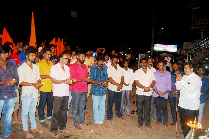 ಬಂಟ್ವಾಳ ಹಿಂದು ಜಾಗರಣಾ ವೇದಿಕೆ ವತಿಯಿಂದ ಬಿ.ಸಿ.ರೋಡಿನ ಬಸ್ ನಿಲ್ದಾಣದಲ್ಲಿ ಜಮ್ಮು-ಕಾಶ್ಮೀರದ ಪುಲ್ವಾಮದಲ್ಲಿ ನಡೆದ ಉಗ್ರರ ದಾಳಿಯಲ್ಲಿ ಹುತಾತ್ಮರಾದ ಯೋಧರಿಗೆ ಶ್ರದ್ಧಾಂಜಲಿ ಸಲ್ಲಿಸಲಾಯಿತು. ಈ ಸಂದರ್ಭ ಮೌನ ಪ್ರಾರ್ಥನೆ ಬಳಿಕ, ವೀರಯೋಧರ ಭಾವಚಿತ್ರ ಕ್ಕೆ ಪುಷ್ಪಾಂರ್ಚನೆ ಸಲ್ಲಿಸಿ ಮಾತನಾಡಿದ ಸತ್ಯಜಿತ್ ಸುರತ್ಕಲ್, ದೇಶ ಕಾಯುವ ನಮ್ಮ ವೀರ ಸೈನಿಕರು ಹೇಡಿ ಉಗ್ರರ ದಾಳಿಗೆ ಬಲಿಯಾದ ಕ್ಷಣ ಇಡೀ ದೇಶದ ಜನತೆಯನ್ನು ಕಣ್ಣೀರು ಹಾಕುವಂತೆ ಮಾಡಿದೆ. ಪ್ರತಿಯೊಬ್ಬ ಸೈನಿಕರ ಬಲಿದಾನವು ನಮಗೆ ನೋವು ತಂದಿದೆ. ಮಾನವ ಹಕ್ಕುಗಳ ಹೆಸರಿನಲ್ಲಿ ಸೈನಿಕರ ಮೇಲೆ ಆಕ್ರಮಣ, ಕೆಲವು ರಾಜಕೀಯ ಪಕ್ಷಗಳ ತೊಂದರೆ , ಪ್ರತಿಕೂಲ ಪರಿಸ್ಥಿತಿ ಯ ಜೊತೆ ಹೋರಾಟ ಇವೆಲ್ಲವುಗಳ ಮಧ್ಯೆ ದೇಶ ರಕ್ಷಣೆ ಮಾಡುವ ಸೈನಿಕರ ಬಗ್ಗೆ ನಾವು ಒಂದು ದಿನವೂ ಯೋಚನೆ ಮಾಡಿಲ್ಲ, ಅವರ ಕುಟುಂಬದ ಸ್ಥಿತಿ ಯನ್ನು ನೋಡಿಲ್ಲ. ದೇಶದ ರಕ್ಷಣೆ ಗೋಸ್ಕರ ಪ್ರತಿಕ್ಷಣವೂ ತುಡಿತದಲ್ಲಿರುವ ಸೈನಿಕರಿಗೆ ಶಕ್ತಿತುಂಬುವ ಕೆಲಸ ನಾವೆಲ್ಲ ರೂ ಮಾಡಬೇಕಾಗಿದೆ. ದೇಶದ್ರೋಹಿಗಳಿಗೆ ಆಶ್ರಯ ನೀಡುವ ಭಯೋತ್ಪಾದಕ ರು ನಮ್ಮ ನೆರೆಹೊರೆಯಲ್ಲಿದ್ದಾರೆ ಎಂಬುದು ವಿಷಾದನೀಯ ಎಂದರು. ಪ್ರಮುಖರಾದ ರಾಧಾಕೃಷ್ಣ ಅಡ್ಯಂತಾಯ, ರವಿರಾಜ್ ಬಿಸಿರೋಡ್, ಚಂದ್ರಕಲಾಯಿ, ರತ್ನಾಕರ ಶೆಟ್ಟಿ, ಮಚ್ಚೇಂದ್ರ ಸಾಲಿಯಾನ್, ಶೇಖರ್ ಶೆಟ್ಟಿ, ಯೋಗೀಶ್ ತುಂಬೆ ಮತ್ತಿತರ ರು ಉಪಸ್ಥಿತರಿದ್ದರು.