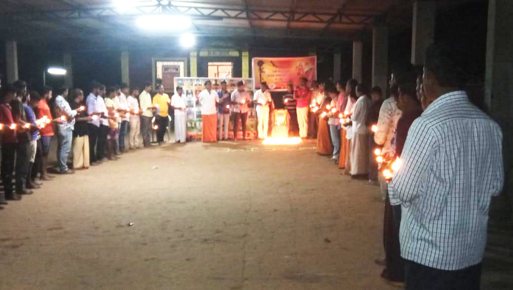 ಬಂಟ್ವಾಳ: ಕಾಶ್ಮೀರದ ಪುಲ್ವಾಮದಲ್ಲಿ ಉಗ್ರಗಾಮಿಗಳ ಧಾಳಿಯಿಂದ ವೀರ ಮರಣ ಹೊಂದಿದ ವೀರ ಯೋಧರಿಗೆ ವಿಶ್ವ ಹಿಂದು ಪರಿಷತ್ ಮತ್ತು ಬಜರಂಗ ದಳ ಹಾಗೂ ಶ್ರೀಕೃಷ್ಣ ಮಂದಿರ ಅಮ್ಟೂರು ವತಿಯಿಂದ ನುಡಿ ನಮನಮನ ಕಾರ್ಯಕ್ರಮ ನಡೆಯಿತು. ಕಾರ್ಯಕ್ರಮದ ಪ್ರಾರಂಭದಲ್ಲಿ ಭಾರತಮಾತೆಯ ಭಾವಚಿತ್ರದ ಮುಂಭಾಗದಲ್ಲಿ ಎಲ್ಲಾ ಕಾರ್ಯಕರ್ತರು ಹಣತೆ ಹಿಡಿದು ವೀರ ಯೋಧರಿಗೆ ಶೃದ್ಧಾಂಜಲಿ ಸಲ್ಲಿಸಲಾಯಿತು.
